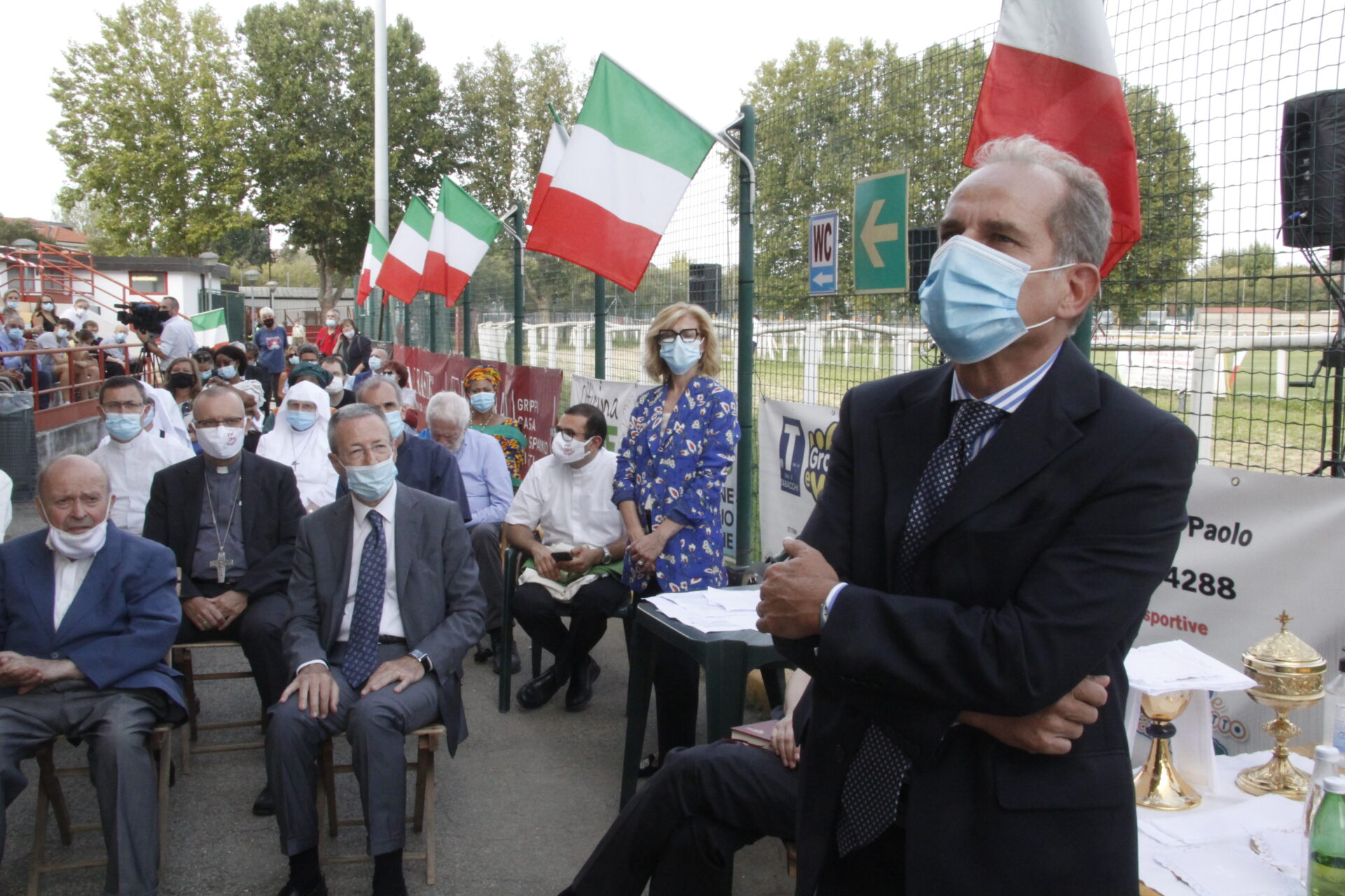 Gli alpini dell’A.N.A di Asti sono stati molto impegnati nel portare avanti i loro compiti al servizio della comunità e l’idea di dedicare un giorno per dire grazie a chi si è dato da fare in quei lunghi mesi è nata proprio da loro e dall’assessore alle politiche sociali Mariangela Cotto. Quindi è stato giusto affidare ad un alpino, Ferdinando Beltramo, e ad un vigile del fuoco, Federico Rozzo, il compito di portare nel campo da calcio il Tricolore per l’alzabandiera. Un momento solenne, emozionante, accompagnato dalle note del’Inno di Mameli suonato dalla Fanfara La Tenentina di Tigliole. Le mascherine indossate dai cittadini presenti non hanno impedito di cantare tutti insieme il nostro Inno nazionale seguito da un fragoroso applauso.