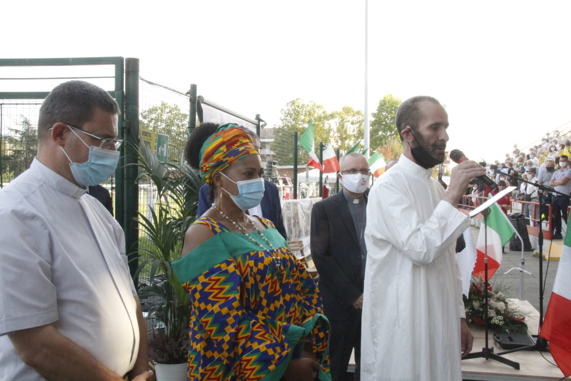 I palloncini colorati, saliti al cielo, come ideale dono alle 256 vittime astigiane del Coronavirus, hanno segnato, sabato pomeriggio, uno dei momenti più toccanti della cerimonia “Per ora Grazie!” promossa dall’assessorato alle politiche sociali del Comune in collaborazione con l’A.N.A di Asti, il Centro Servizi di Volontariato Asti e Alessandria, la Banca del Dono e l’associazione di volontariato “Il Dono del Volo”. Prima del lancio dei palloncini, i deceduti astigiani a causa del Covid-19 sono stati ricordati con l’accensione di una fiamma e da un momento di preghiera interreligiosa insieme al vescovo di Asti Marco Prastaro (che poi ha anche officiato la santa messa) e all’Imam di Asti Abdessamad Latfaoui. Una cerimonia, quella di sabato, ospitata allo stadio Censin Bosia alla quale hanno partecipato i rappresentanti di molte associazioni di volontariato, enti, comitati che si sono impegnati ad aiutare i cittadini durante le dure settimane del lockdown. Tante anche le autorità civili presenti sulle gradinate a cominciare dal sindaco di Asti Maurizio Rasero, il vice presidente della Regione Piemonte Fabio Carosso, i parlamentari Andrea Giaccone e Massimo Berutti, il presidente della Fondazione CrAsti Mario Sacco, la vice presidente della Provincia Francesca Ragusa, gli assessori comunali e i rappresentanti di tutte le forze dell’ordine presenti sul territorio.