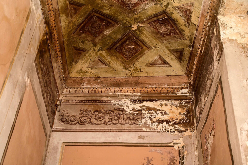 Altra acqua si infiltra dalle finestre rotte e sgangherate e i giardini interni sembrano ormai due giungle urbane più che intime zone verdi nel cuore del centro storico.