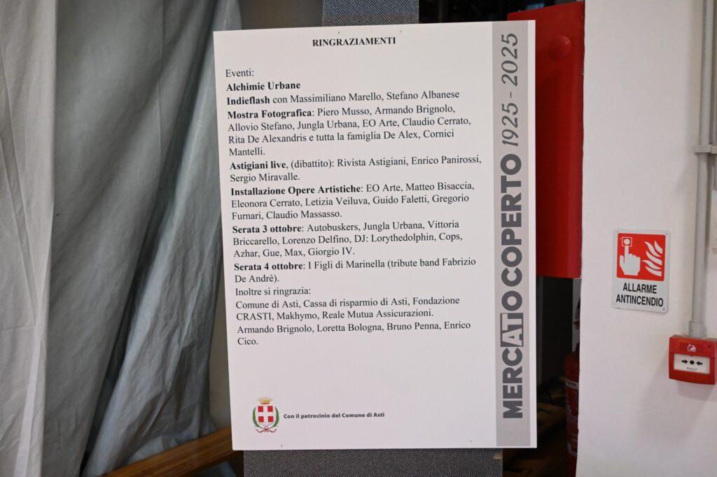 Dai laboratori per bambini alle performance musicali, dalla mostra di foto storiche alle installazioni contemporanee, passando per il dibattito sul futuro del mercato: ogni iniziativa ha registrato un’ottima risposta di pubblico. In particolare il fine settimana ha visto un’affluenza molto alta, con tanti astigiani e visitatori che hanno voluto vivere l’atmosfera speciale tra i banchi e gli spazi del mercato.