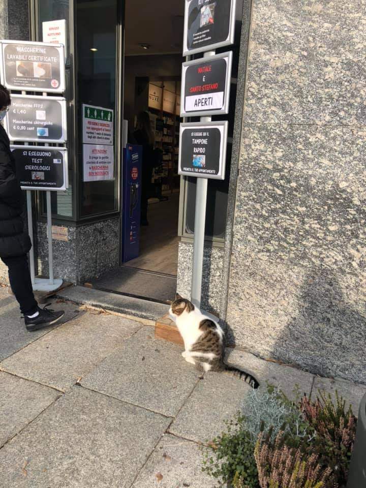 «Tutto è iniziato lo scorso anno nel periodo del lockdown – racconta il dottor Gatto, titolare della farmacia “Piazza Roma” – Era aperta solamente la farmacia e lo trovavamo sovente davanti alla porta. Aspettava il momento giusto per intrufolarsi all’interno: un gatto in farmacia non è l’ideale e così gli abbiamo attrezzato una sua cuccia nel cortile sul retro. Un gatto bravissimo, che porta tanta simpatia». Ma chi ha una vera passione per Silver in farmacia è Elisa Scardino, che dal magazzino coglie ogni momento libero per coccolarlo amorevolmente.