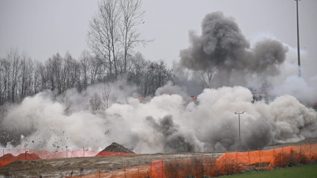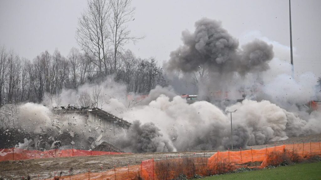 Alla demolizione, sotto un cielo grigio e la pioggia battente, hanno assistito il sindaco di Rocchetta Tanaro Massimo Fungo, l’assessore provinciale e sindaco di Nizza Monferrato Simone Nosenzo e il consigliere regionale Fabio Carosso. È stato proprio il sindaco Fungo a premere il pulsante che ha dato il via all’ultimo conto alla rovescia innescando le esplosioni.