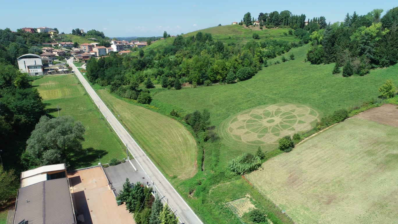 Il cerchio nel grano, comparso su una collina di Portacomaro d’Asti, durerà una decina di giorni, ma di certo resterà una delle opere più originali firmate dall’artista Giuseppe Gargarella.