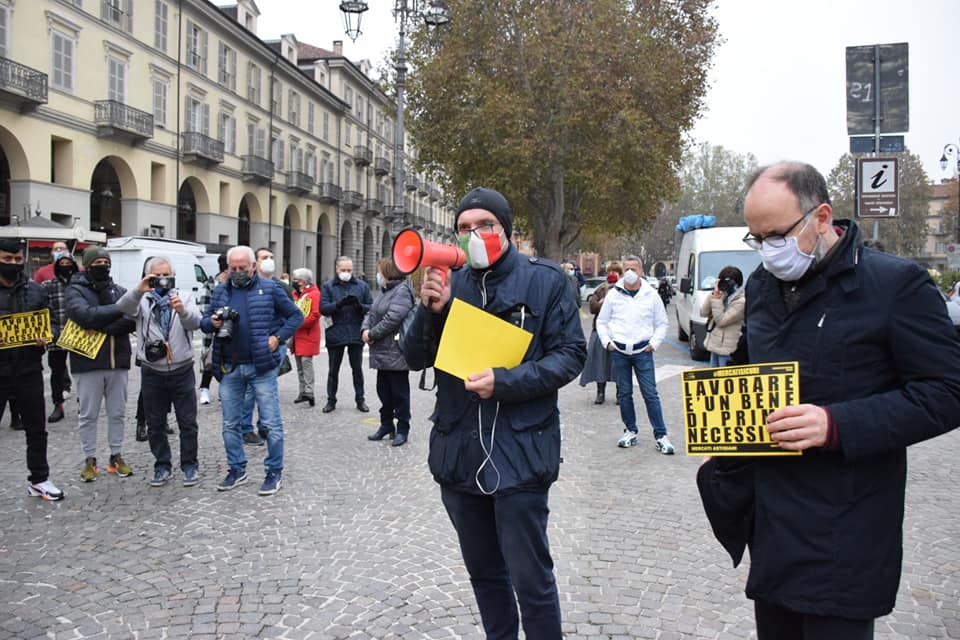 Asti: gli ambulanti del mercato sono scesi in piazza, pacificamente, per protestare contro le chiusure dettate dall’ultimo DPCM
