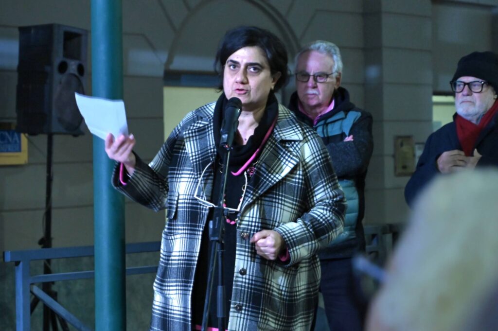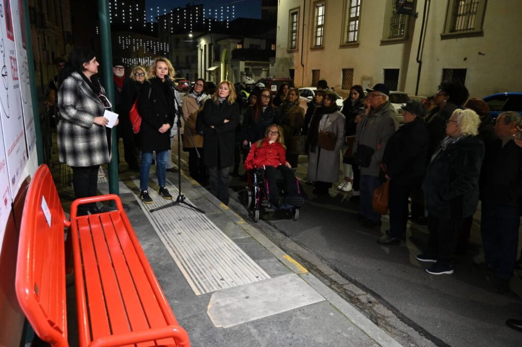 «Il mio desiderio, oggi, è che questa panchina diventi molto più di un arredo urbano: che sia un invito quotidiano al rispetto, alla responsabilità e alla solidarietà, che parli a chi si ferma qui, anche solo per un attimo – ha rimarcato la presidente Merlone – Questa panchina è sì un oggetto, ma può davvero essere un punto di riferimento per chi attraversa un momento buio: è collocata in un luogo di passaggio proprio per testimoniare che si può fermare la violenza, che ognuna e ognuno può trovare qui sostegno, ascolto e speranza. Lo dimostrano i fatti: pochi giorni fa, un articolo di un giornale locale raccontava di una donna che, riconosciuto il simbolo della panchina rossa in un’attività commerciale, ha portato lì la sua famiglia per chiedere aiuto. Gli imprenditori hanno capito subito il significato di quel gesto, hanno chiamato i carabinieri, e così è stato possibile avviare un percorso di protezione. È fondamentale che tutti conoscano questi simboli e che tutti sappiano anche il valore del numero 1522: una chiamata può cambiare una vita e chiunque può contribuire a offrire soccorso».