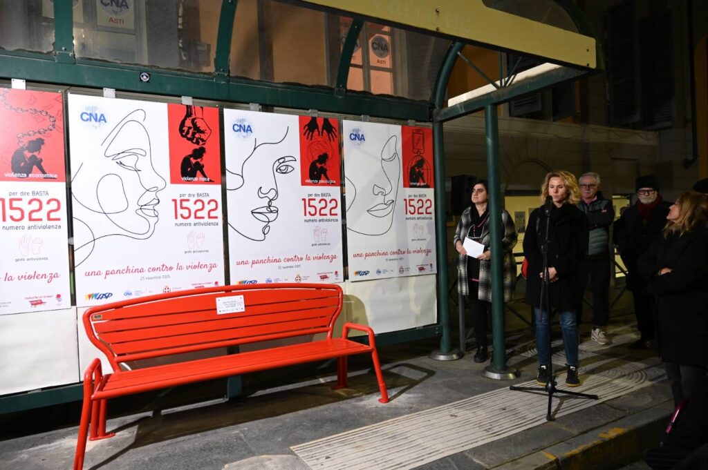 La panchina, trasformata grazie all’Associazione Arti e Mastri di Montegrosso, è stata posizionata davanti alla sede associativa, alla fermata del bus, per richiamare l’urgenza di opporsi con forza a ogni forma di violenza sulle donne. L’iniziativa, patrocinata dal Comune e sostenuta economicamente dall’Asp, ha visto la partecipazione di numerose autorità e rappresentanti istituzionali. Ad aprire l’evento è stata la presidente della Cna di Asti, Lia Merlone, che ha sottolineato: «Questa Panchina rossa, posizionata in un luogo nevralgico della nostra città, è un monito costante, un simbolo tangibile di solidarietà e un impegno a non distogliere lo sguardo. La Cna crede con forza che la battaglia contro la violenza passi anche attraverso il supporto concreto alle donne, offrendo non solo un rifugio, ma soprattutto una possibilità di riscatto economico e sociale».