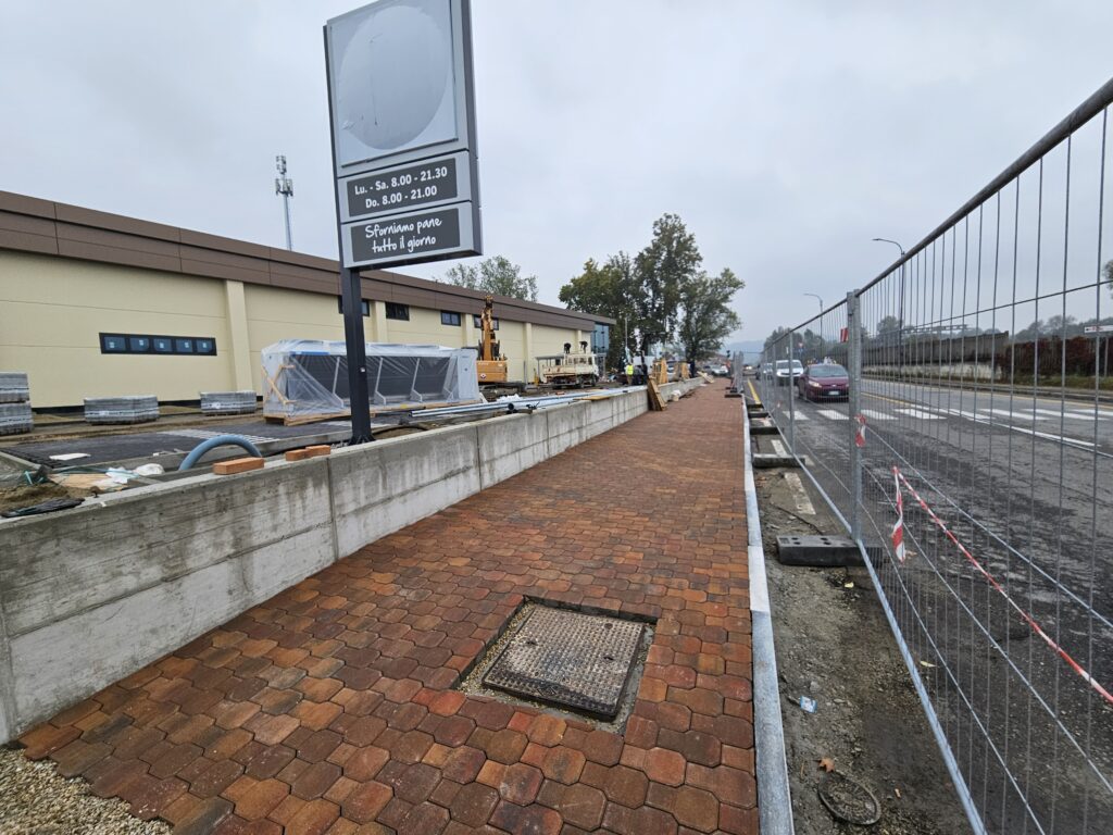 La rotatoria sarà invece completata tra domani e giovedì e il cordolo di cemento, che oggi si vede sbordare dal manufatto, si troverà a livello del manto stradale garantendo maggiore spazio di movimento e più fluidità del traffico. Almeno questo è l’auspicio. Però c’è un’altra questione già sollevata da alcuni passanti e si tratta del marciapiede costruito davanti al nuovo supermercato della Lidl.