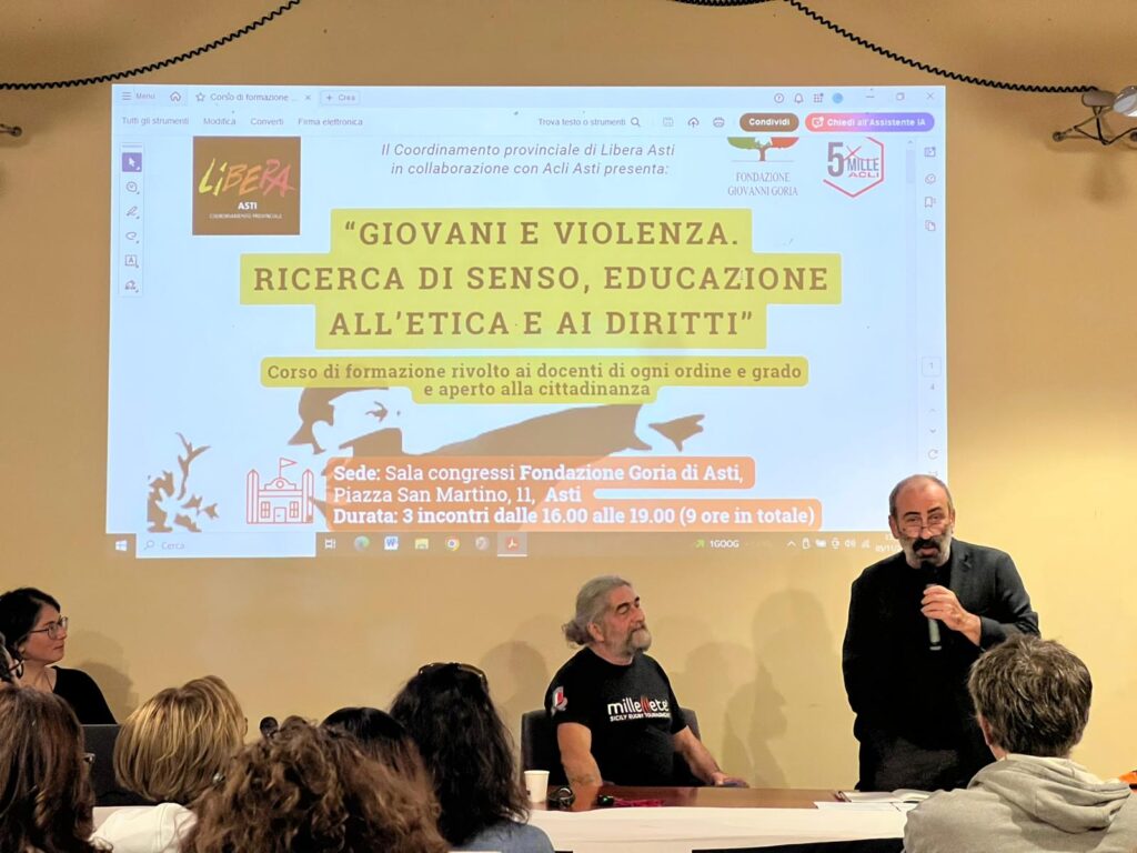 “Giovani e crimine” era l’argomento del primo incontro del corso di formazione di Libera Asti, iniziato il 5 novembre, organizzato col sostegno di Acli Asti dal titolo “Giovani e violenza. Ricerca di senso, educazione all’etica e ai diritti” rivolto agli insegnanti e aperto alla cittadinanza. Un uditorio numeroso e attento ha seguito con grande interesse gli interventi dei tre relatori che hanno affrontato il tema da prospettive diverse, ma complementari, partendo dal comune presupposto che si tratti di un fenomeno dalle motivazioni complesse su cui devono lavorare diversi specialisti.