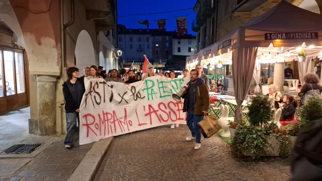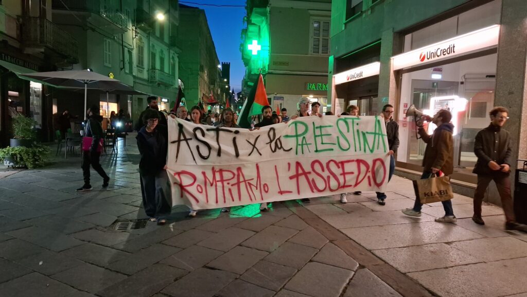 Prima un sit in in piazza San Secondo, davanti al municipio, poi un lungo corteo tra corso Alfieri e l’ospedale Massaia dove si è svolto un presidio durante il quale sono stati letti i nomi degli oltre 1.700 medici e sanitari uccisi a Gaza durante l’azione bellica di Israele. Anche Asti, giovedì sera, si è mobilitata al motto di “Asti sa da che parte stare. Palestina libera dal fiume fino al mare”.