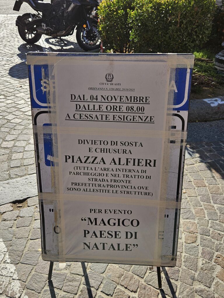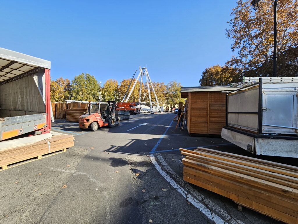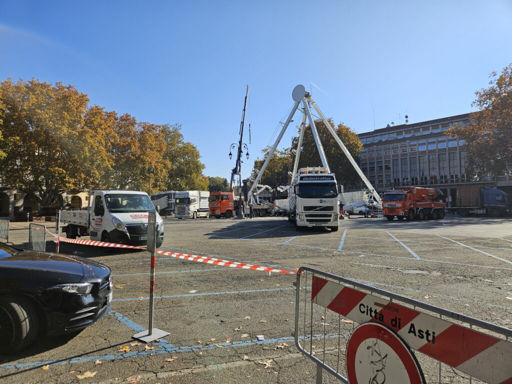Tutto come da programma, o quasi. Questa mattina, dalle ore 8, è scattato il divieto di sosta all’interno del parcheggio di piazza Alfieri, e nella zona davanti alla Prefettura, per consentire agli incaricati di procedere con l’allestimento delle 130 cassette del Magico Paese di Natale e della grande ruota panoramica che, anche quest’anno, accompagnerà la manifestazione.
