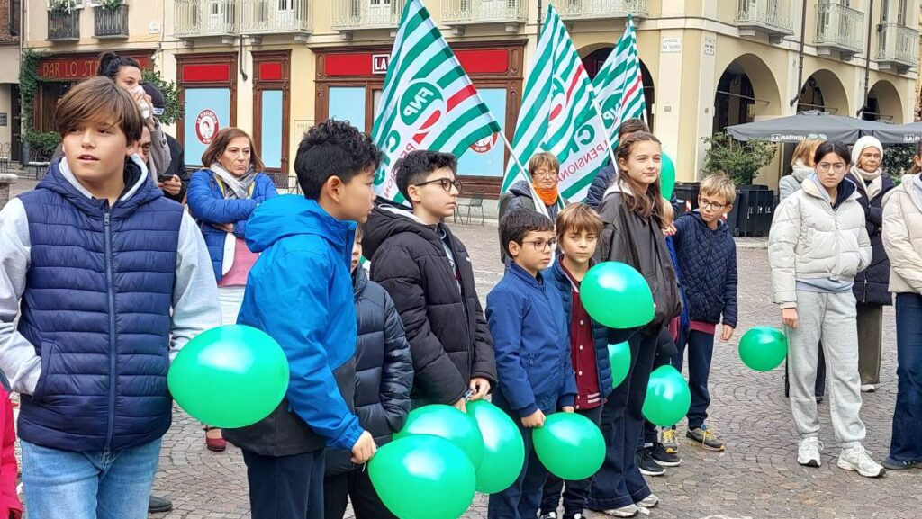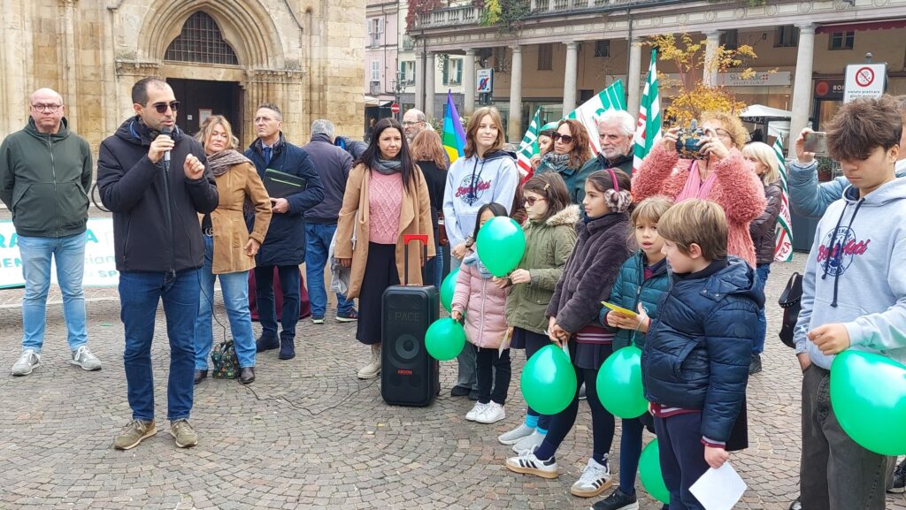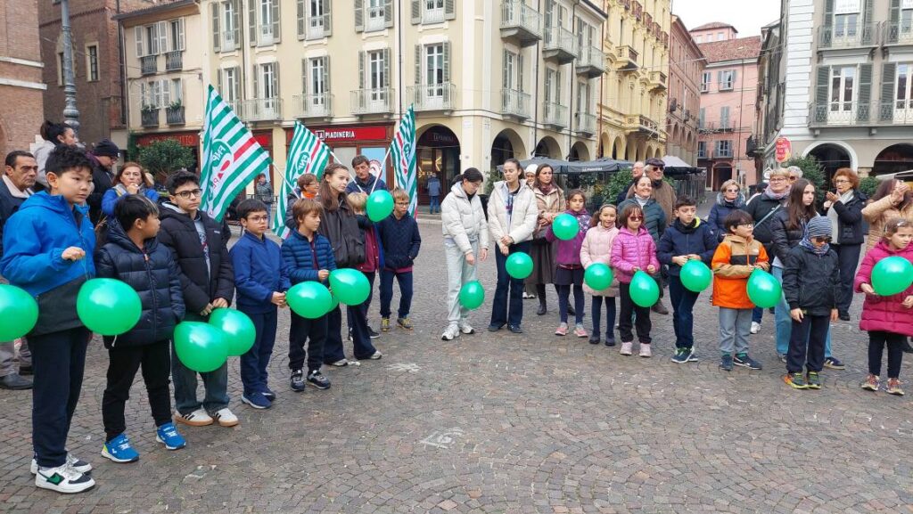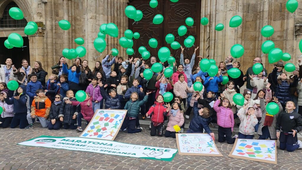 Nello specifico, ad Asti la tappa è stata declinata con l’incontro “I bambini raccontano la pace”, rivolto agli alunni delle scuole. Presenti le classi della primaria bilingue paritaria Best, dalla prima alla quinta, insieme ai compagni di terza media. Affiancati dagli insegnanti, i bambini delle elementari hanno esibito cartelloni ricchi di frasi e riflessioni sul concetto della pace, quindi hanno recitato diverse poesie sul tema della giornata e, insieme ai compagni più grandi, hanno intonato il canto “Credo negli esseri umani” di Marco Mengoni. Poi, al termine, il lancio dei palloncini al grido collettivo «Viva la pace».