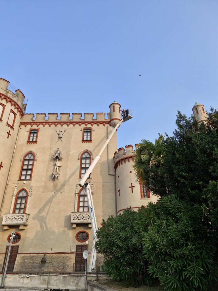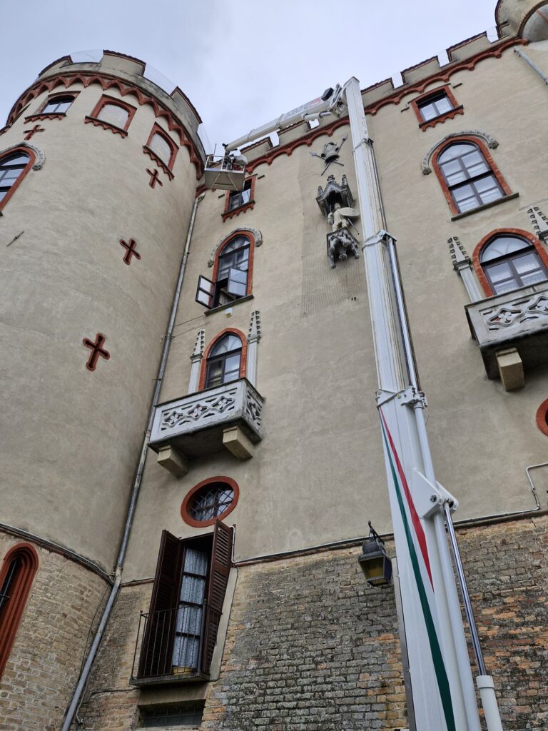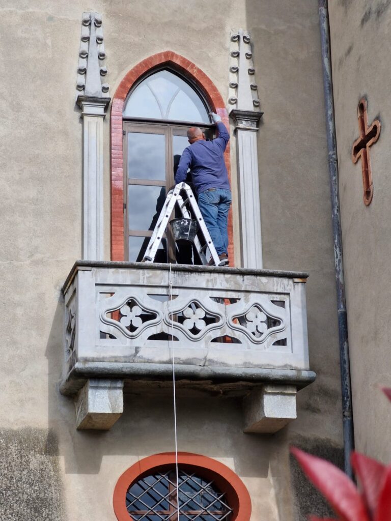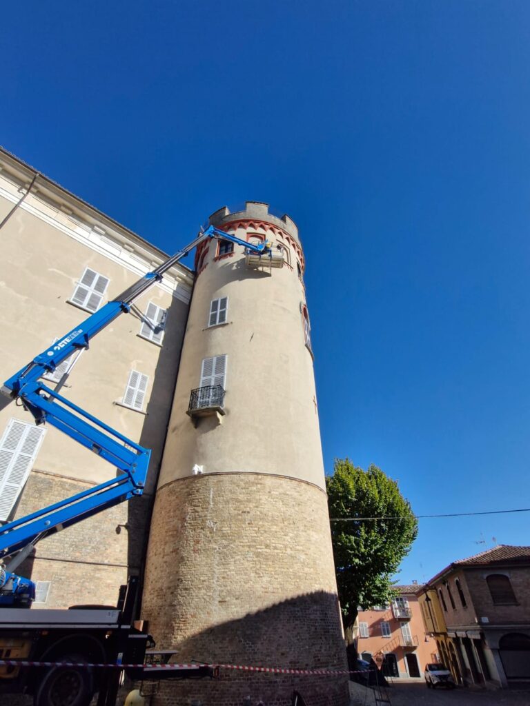 La dedizione e la cura che la famiglia Balduzzi riserva al castello di Costigliole, della cui metà è proprietaria da generazioni, è quotidiana. Un affetto e un legame saldissimo che si respira volgendo gli occhi al maniero e a quelle finestre che custodiscono le sale in cui visse la contessa di Castiglione. E in questi giorni la facciata sud del castello che si affaccia su via Roma, al di là del suo magnifico giardino pensile, risplende ancor più, attraverso un intervento che riguarda le cornici delle finestre e le croci che adornano le facciate.