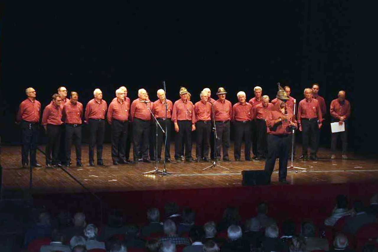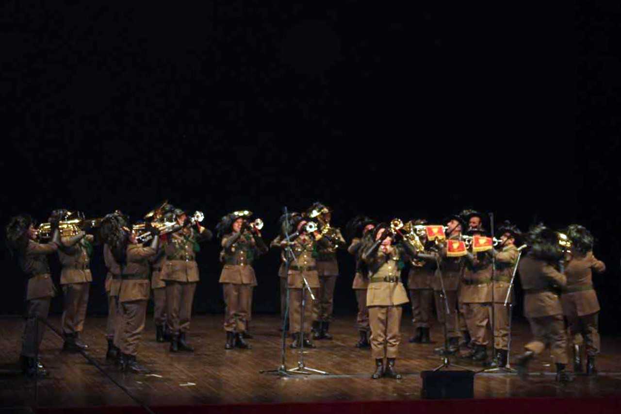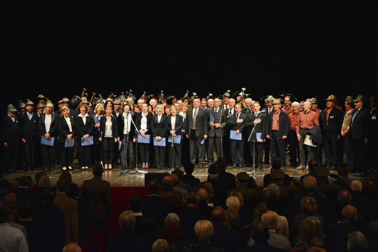 Ad aprire il concerto, presentato da Roberto Venturini, referente ANA della manifestazione, la fanfara “La Tenentina”, molto applaudita, che ha esordito con una marcia intitolata “Asti” cui è seguito il coro ANA Vallebelbo, poi la bravissima fanfara torinese “Montenero” con una selezione di pezzi risorgimentali e popolari, il “Coro Amici della Montagna” che ha commosso con la lettura di brani di lettere dal fronte intervallate da canzoni, spettacolare, quindi, l’ingresso della fanfara dei bersaglieri “Lavezzeri” dal fondo del teatro sulle note della loro marcia Flik Flok, che ha emozionato con Al Reggimento di Papà e il sempre toccante Il Silenzio.