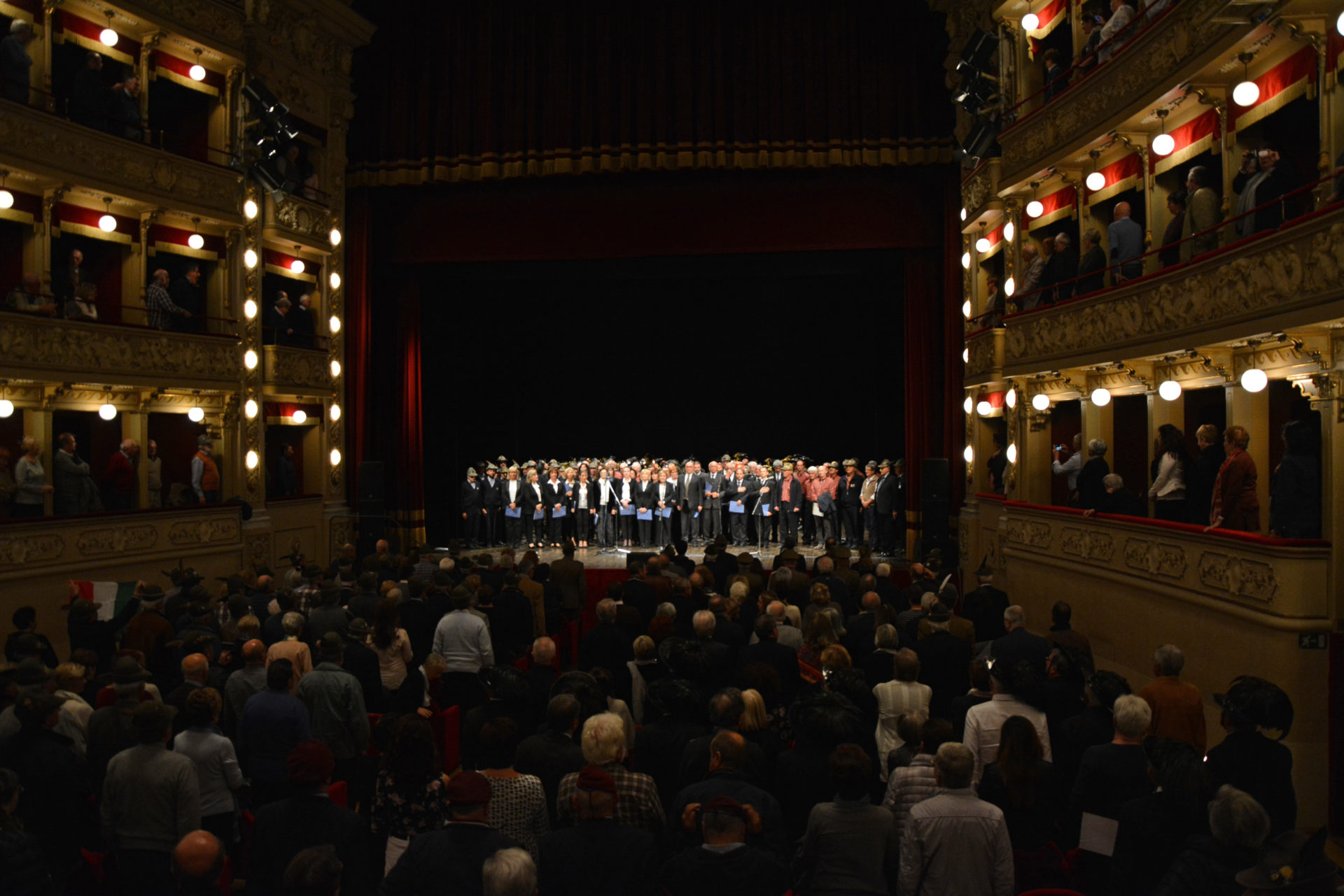 È stata una serata emozionante e coinvolgente, quella di lunedì scorso a Teatro Alfieri, una serata organizzata dall’ANA di Asti, in occasione del centenario della Grande Guerra che ha fatto registrare il tutto esaurito. Una serata che si è rivelata un successo sotto tutti i punti di vista, intitolata “Cori e fanfare: canti popolari e militari inerenti alla Prima Guerra Mondiale”. Tra il numerosissimo pubblico intervenuto per assistere al concerto, il questore Alessandra Faranda Cordella, il sindaco Maurizio Rasero, l’assessore Gianfranco Imerito e rappresentanze di tutte le Associazioni d’Arma.