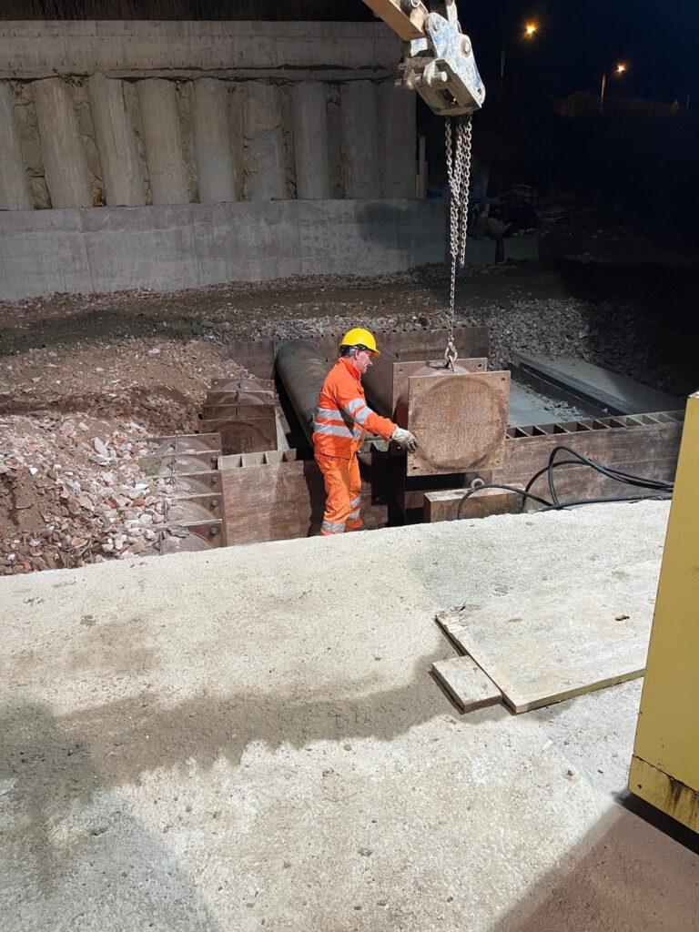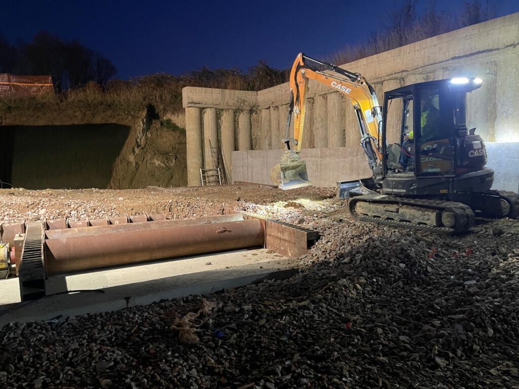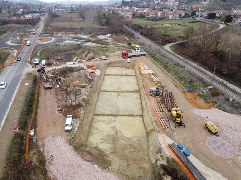 Sono proseguiti anche di notte i lavori per realizzare il sottopasso ferroviario della futura Variante di Montegrosso d’Asti, che collegherà la statale 456 “Asti Mare” con la strada provinciale che porta in direzione di Mombercelli e percorre la Val Tiglione. Questa settimana le operazioni hanno riguardato in particolare l’inserimento della struttura in cemento armato attraverso appositi macchinari al di sotto della linea ferroviaria Asti-Nizza Monferrato, per realizzare il sottopasso che consentirà di collegare le due strade, evitando il passaggio del traffico nel centro abitato di Montegrosso lungo via XX Settembre. I treni non si sono mai fermati, grazie alla realizzazione di ponti provvisori, installati per il passaggio dei convogli durante la “spinta” del manufatto.