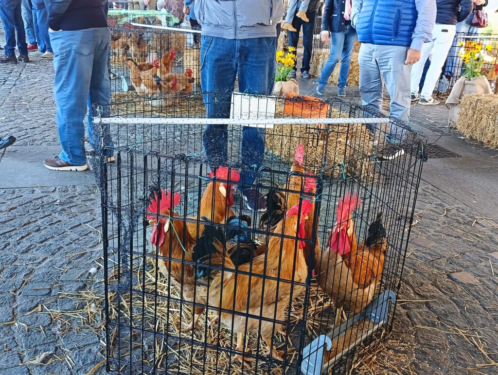 L’Ala del mercato quasi non bastava per l’esposizione dei capi di Gallina Bionda partecipanti alla 23esima edizione dell’Elogio villanovese.