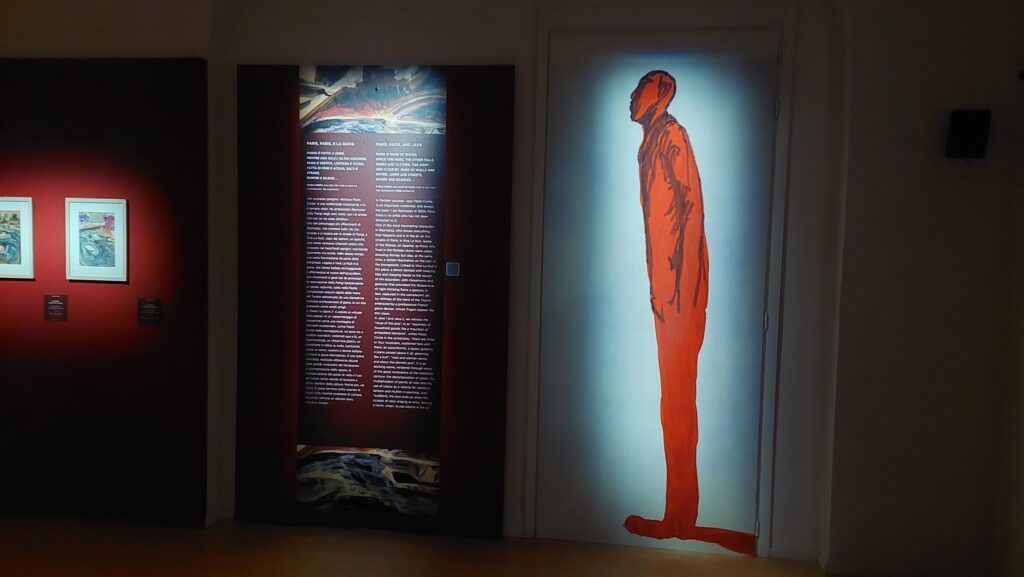 La mostra si compone di 143 lavori su carta, messi a disposizione dalla Fondazione Egle e Paolo Conte, eseguiti con tecniche diverse e in un arco di tempo di quasi settant’anni, divisi in tre nuclei distribuiti nelle sale del piano terreno e dei sotterranei del museo.
