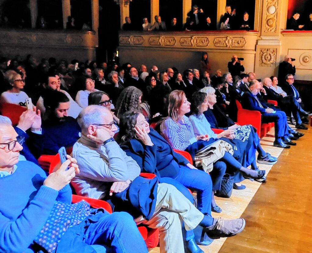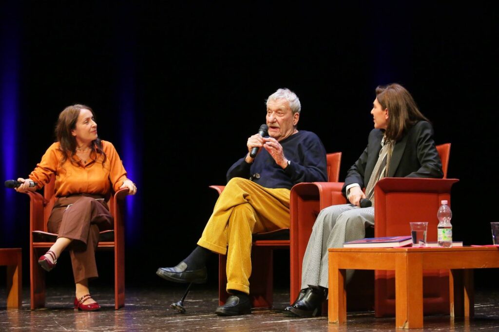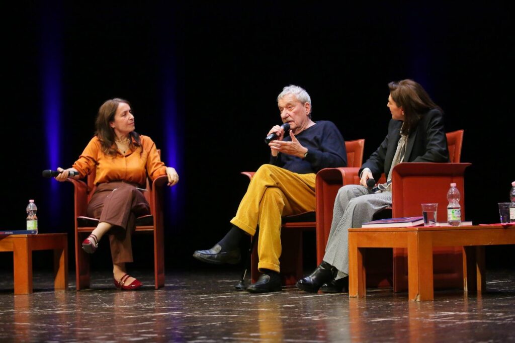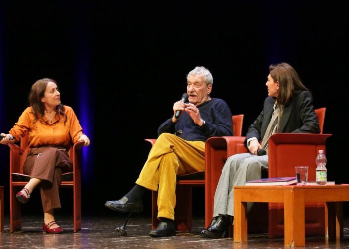 Intervistato dalla giornalista del Corriere della Sera Roberta Scorranese e affiancato dalla curatrice della mostra Manuela Furnari, il Maestro ha parlato di fronte ad una folta platea che ha aderito all’incontro ad invito, affascinando il pubblico grazie al suo stile arguto, elegante e garbatamente ironico. Presenti, oltre alla famiglia (dalla moglie Egle al fratello Giorgio) e al suo staff (in primo luogo la manager Rita Allevato) anche tanti amici, tra cui Caterina Caselli, oltre a numerose autorità locali.