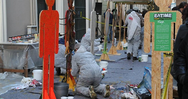 FOTO: Eatime, sagome di legno davanti a Tuit