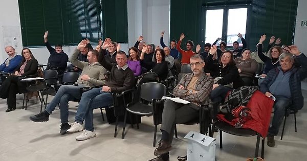 N.B.: nella foto le mani alzate sono quelle dei soci che hanno approvato all'unanimità, gli altri sono funzionari senza diritto di voto