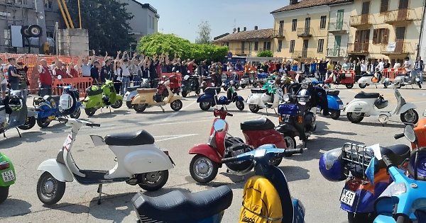 Sono arrivati anche dalla Sicilia per partecipare al raduno organizzato dal club Vespisti Moderni di Asti il 2 giugno nella Riviera del Monferrato, in occasione del 60° anniversario della mitica Vespa 50. Già alcuni giorni prima le iscrizioni erano sold out, essendo stato raggiunto il numero massimo di 350 partecipanti. Tuttavia molti altri appassionati dello scooter della Piaggio si sono aggregati, seppur non iscritti ufficialmente. Fin dalle prime ore del mattino Vespe di ogni epoca e modello, provenienti da tutta Italia hanno invaso piazza Giordano. Fra le curiosità un Piaggio Calessino, il veicolo a tre ruote prodotto a partire dal 1949, per muoversi nelle località di villeggiatura più di moda negli anni del boom economico. Dopo il taglio del nastro da parte del sindaco Umberto Fasoglio, un interminabile rombante corteo ha percorso le strade del paese con una sosta all’azienda vitivinicola Poggio Ridente per l’aperitivo. Star della manifestazione è stato Loris Rosati, cinque volte campione italiano di “Ape Proto Evolution”, con il suo famoso Crazy Ape car proto 95, che si è esibito in alcune spettacolari acrobazie al campo sportivo di Montecapra; questo rosso prototipo, vestito da Saetta Mc Queen, in grado di toccare i 145 km/h, del modello originale conserva in pratica solo la cabina: il motore è un Honda Hornet 600, la forcella anteriore deriva dall’Ape 501, mentre gli ammortizzatori provengono dal motocross. Il raduno si è concluso con una degustazione di prodotti tipici, offerta Pro Loco.