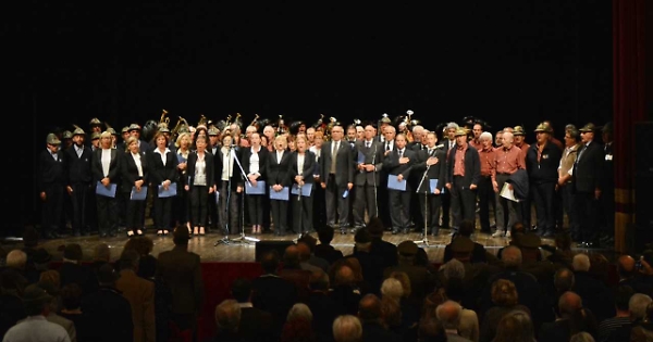 Tutti i cori e le fanfare riunite sul palco dell'Alfieri per il canto finale