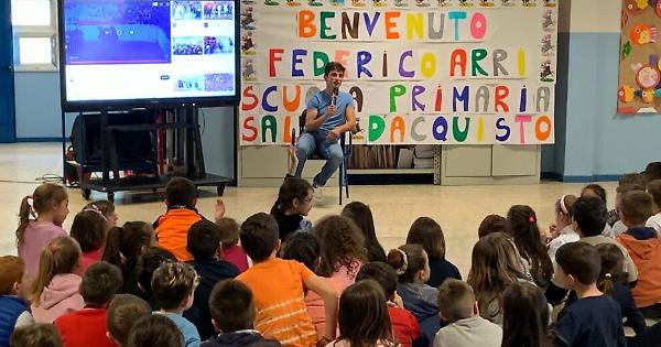 Il fantino Federico Arri, vincitore del Palio 2023, ha visitato la scuola primaria Salvo d'Acquisto