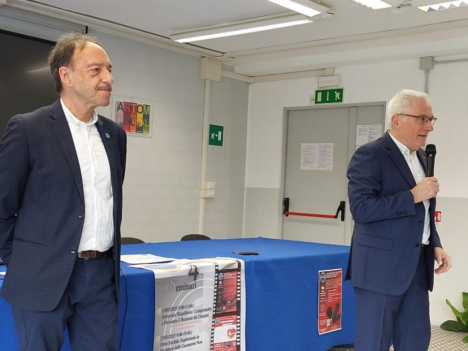 Presenti alla cerimonia l’attuale preside Franco Calcagno e lo storico prof. Michelino Musso con numerosi alunni delle attuali classi quinte, alcuni ex allievi di quella storica annata scolastica ed alcuni professori d’oggi. Ad aprire la cerimonia non poteva che essere il prof. Calcagno che ha lasciato poi il microfono per la cronistoria e la descrizione del percorso che ha portato ad istituire la borsa di studio dallo storico gruppo dell’Artom, al “capoclasse” dell’epoca Francesco Marzo, oggi presidente del Centro Servizi Volontariato, ma in questa occasione deus ex machina dell’organizzazione. Sono poi stati consegnati i diplomi e gli assegni ai due allievi meritevoli che frequentano la casse V AE dell’anno scolastico in corso: Alessandro Abbate e Alberto Cravella. Photogallery di Agostino Santangelo