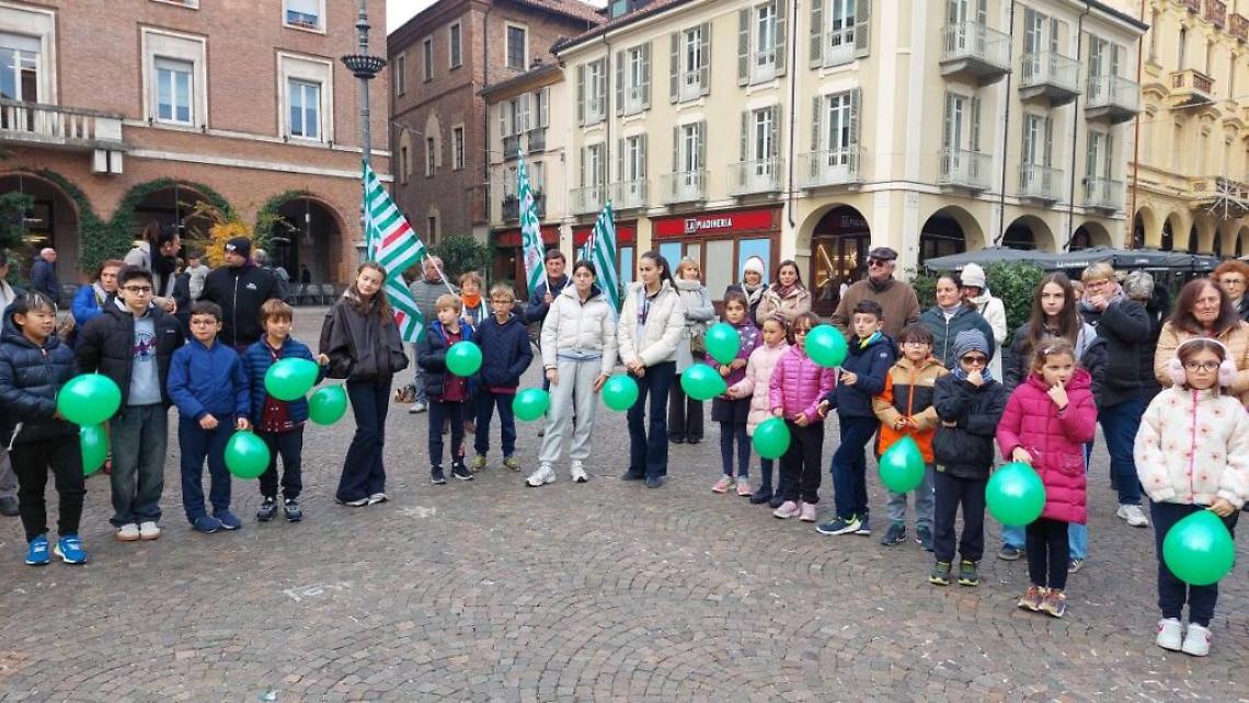 Nello specifico, ad Asti la tappa è stata declinata con l'incontro "I bambini raccontano la pace", rivolto agli alunni delle scuole. Presenti le classi della primaria bilingue paritaria Best Asti, dalla prima alla quinta, insieme ai compagni di terza media. Affiancati dagli insegnanti, i bambini delle elementari hanno esibito cartelloni ricchi di frasi e riflessioni sul concetto della pace, per poi recitare diverse poesie sul tema della giornata. Insieme ai compagni più grandi, poi, hanno intonato il canto "Credo negli esseri umani" di Marco Mengoni. Al termine, il lancio dei palloncini al grido collettivo «Viva la pace».