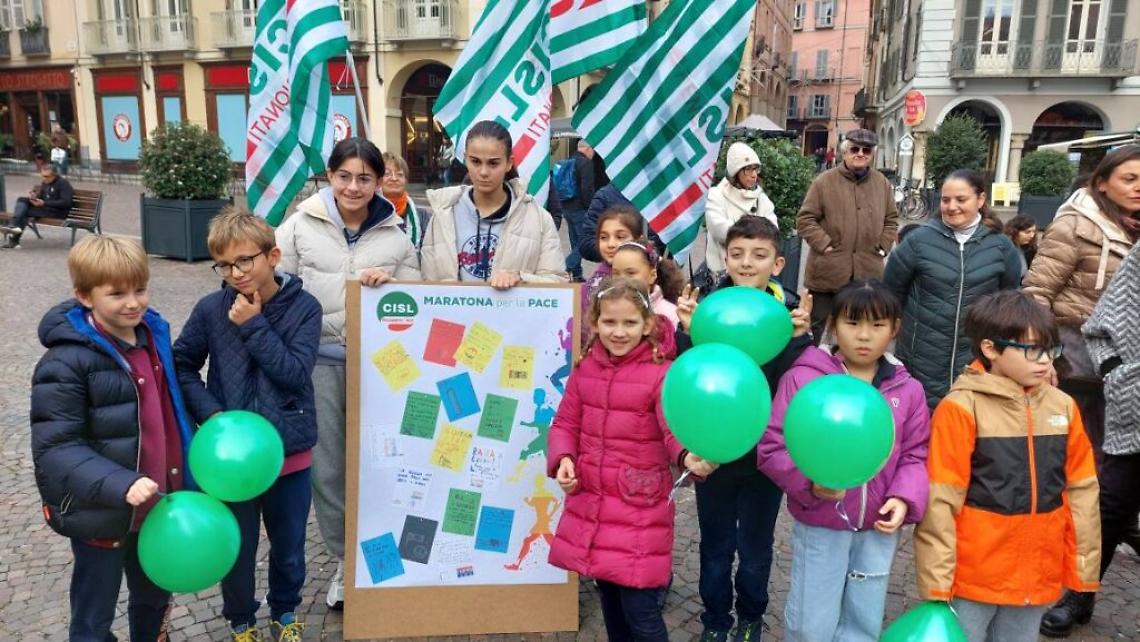 Ha fatto tappa anche ad Asti, stamattina in piazza San Secondo, la "Maratona per la pace" promossa dalla Cisl. E', questa, una catena di iniziative, definita alle insieme alle strutture provinciali del sindacato in tutta Italia, che terminerà con l'assemblea nazionle del 15 novembre a Roma, traguardo simbolico di questo cammino collettivo.