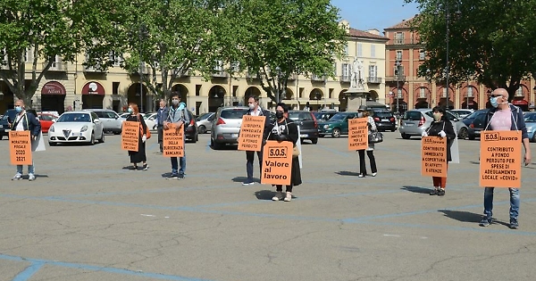 Così diversi piccoli imprenditori e partite iva, del tutto indipendenti e arrivati da soli in piazza Alfieri, hanno iniziato a camminare tra le auto, a distanza di sicurezza, rispettando i divieti vigenti, ma indossando cartelli molto significativi: SOS lavoro, liquidità immediata urgente a fondo perduto, condono tombale 2020, immediata semplificazione, apertura subito per le attività in regola col protocollo di prevenzione e sicurezza, no accertamenti. Una quindicina i cittadini che hanno aderito all’idea lanciata nei giorni scorsi da ATTIVA - Associazione Territoriale di Imprese e Lavoratori Autonomi con Partita IVA.