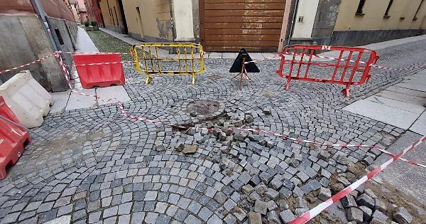 Stamattina problemi alla viabilità in via Carducci e zone limitrofe per la chiusura di via Giobert dall'incrocio con via Carducci, appunto, e via Cattedrale a causa della alta pressione sui tubi di scarico dei tombini che hanno provocato fuoriuscita di acqua e il dissesto dei blocchetti di porfido.