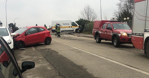 A scontrarsi sono stati una Lancia Y rossa e un furgone: la prima ha finito la sua corsa senza controllo contro due auto parcheggiate lungo la via che appartengono ai residenti delle villette che si affacciano sulla strada mentre il furgone si è schiantato contro la recinzione di una casa.