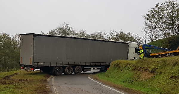 Martedì pomeriggio, intorno alle 16, un Tir lungo 18 metri, proveniente dalla Polonia e diretto a Torino, è rimasto letteralmente bloccato mentre tentava di superare la salita di Bricco Roasio, una strada con una larghezza appena sufficiente a far transitare un'auto. L'autista del Tir, un polacco di 23 anni, ha tentato di andare avanti nonostante la curva a gomito, ma è finito nel fossato. Un margine, quello della strada, reso viscido dalla pioggia caduta fino a ieri.