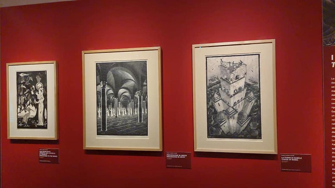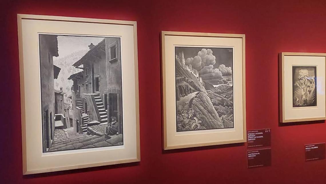 Il percorso comincia con due sezioni incentrate sulla formazione e sul viaggio intrapreso da Escher in Italia. «Figlio di un ingegnere idraulico, di famiglia benestante - ha spiegato il curatore - Escher ha studiato arti grafiche, nonostante il papà lo volesse architetto. Da giovane ha vissuto l’esperienza del Grand Tour, il viaggio di istruzione per eccellenza che accomunava i ragazzi delle classi agiate. Ebbene, in quell’occasione arrivò in Italia, dove restò incantato dai paesaggi, soprattutto quelli dell’Italia rurale del centro e del Sud, così diversi dalla “piatta” Olanda, tanto che furono sempre presenti nelle sue opere, rappresentando una costante. Successivamente Escher visse stabilimente nel nostro Paese, dove conobbe anche la moglie, di origini svizzere, e vi rimase fino al 1935. Poi, a causa degli episodi di intolleranza nei confronti degli stranieri in epoca fascista, si trasferì in Svizzera, per poi tornare in Olanda. Non senza intraprendere, prima, un viaggio nel Mediterraneo, a bordo della nave Adria, altra esperienza che lo influenzò moltissimo.