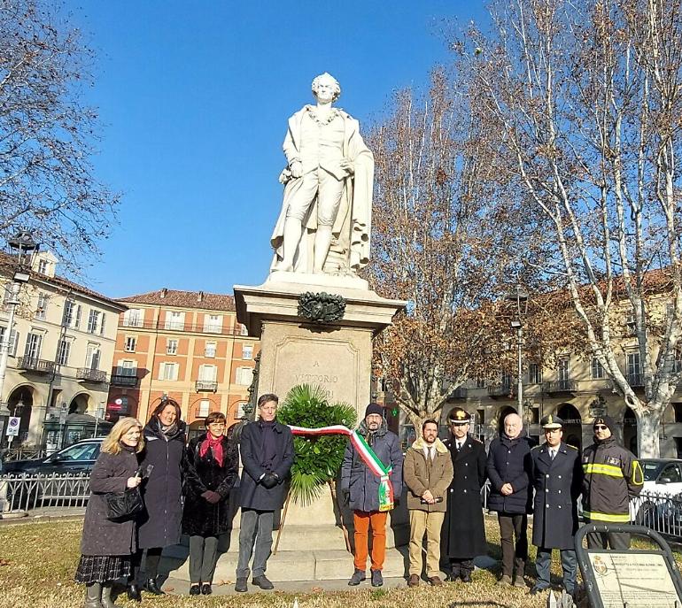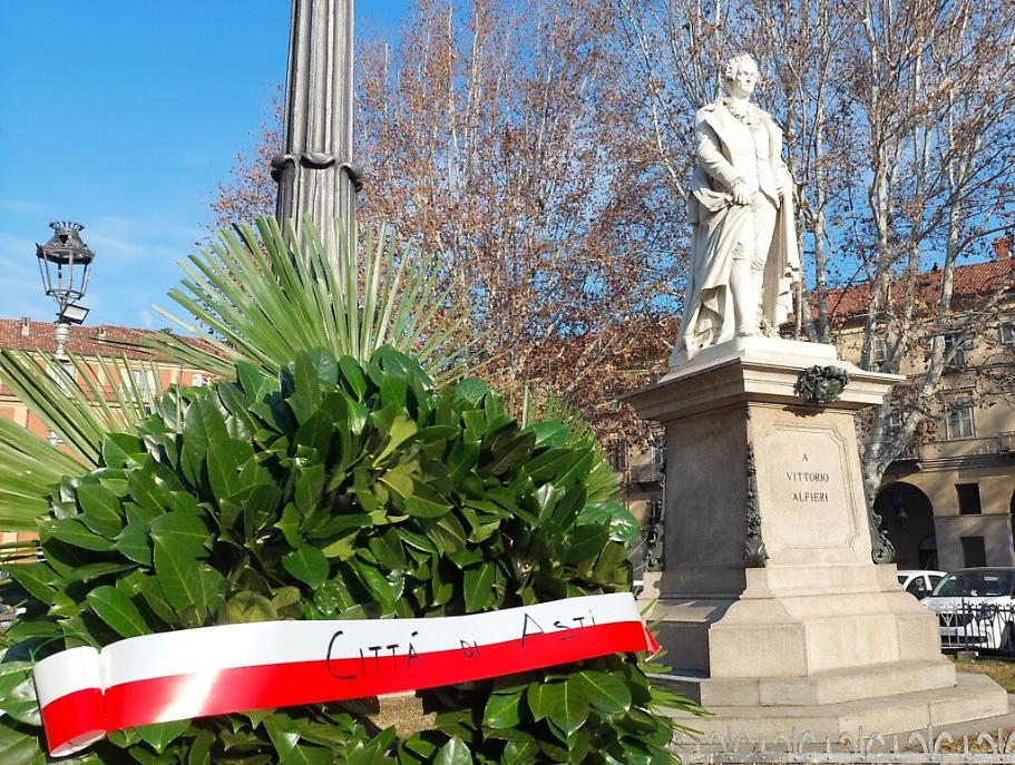 E’ stato dedicato all’Alfieri più intimo, umano, mosso da un legame profondo verso la città di Asti l’omaggio che si è tenuto ieri (venerdì) in piazza Alfieri. Come avviene dal 1999, infatti, le autorità cittadine - civili e militari - hanno deposto una corona alla base del monumento dedicato all’illustre poeta astigiano in occasione dell’anniversario della nascita, avvenuta il 16 gennaio 1749. Presenti, tra gli altri, il Prefetto Claudio Ventrice, il sindaco Maurizio Rasero con l’assessore comunale alla Cultura Paride Candelaresi e i vertici della Fondazione centro di studi alfieriani, che si occupa di promuovere e coordinare gli studi sulla vita e le opere del trageda. In piazza sono infatti intervenuti la direttrice Carla Forno e il vice presidente Renato Grimaldi (assente per indisposizione il presidente Enrico Mattioda).