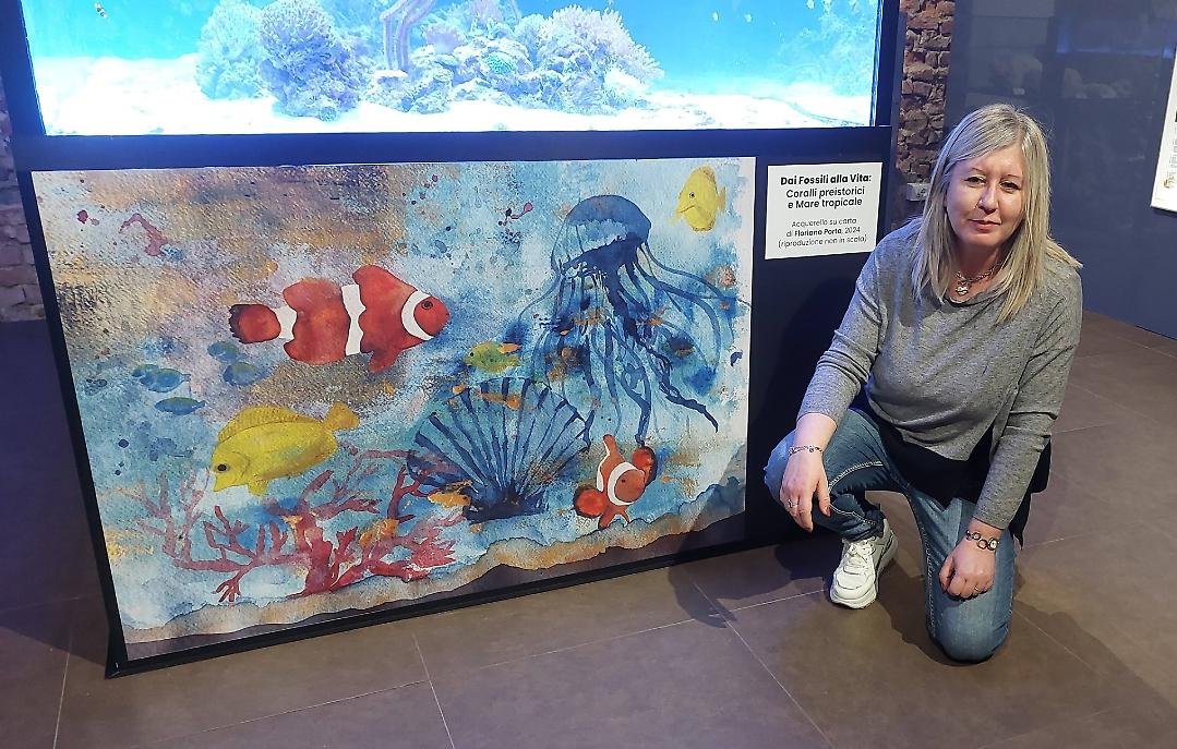 Ultima novità, la nota artistica. L'artista astigiana Floriana Porta - la cui mostra personale è in corso nell'ex chiesa del Gesù, attigua al Museo Paleontologico - ha donato al museo un acquerello originale, ispirato alle specie viventi dell'acquario, che è stato applicato direttamente sulla base della vasca.
