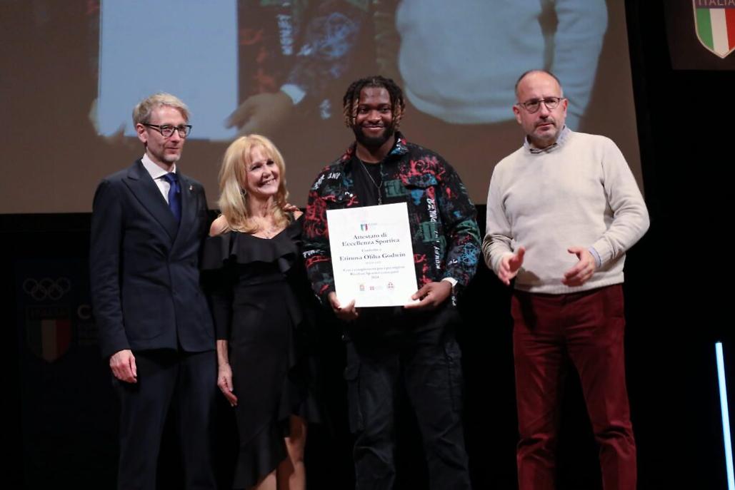 Sfilata di campioni al Teatro Alfieri per l'edizione 2024 della Festa dello Sport Astigiano,  organizzata dal Comune di Asti, Provincia di Asti e CONI Piemonte delegazione di Asti. La cerimonia di premiazione delle eccellenze sportive astigiane si è svolta lunedì 2 dicembre. Protagonisti gli atleti, le società e le associazioni sportive del territorio che svolgono, promuovono, praticano lo sport nei suoi diversi ambiti e declinazioni, dall’attività di alto livello a quella, fondamentale, di avviamento. Anche nell’edizione 2024 premiati i Centri CONI diffusi sul territorio provinciale, che, con la collaborazione di più società sportive, incentivano l’approccio allo sport da parte dei più piccoli nell’ottica della multidisciplinarietà. Come da tradizione, consegnate le benemerenze e le onorificenze da parte del CONI nazionale e premiati gli atleti che, nel 2024, hanno vestito la maglia della Nazionale Italiana nelle diverse discipline sportive e i vincitori dei titoli di Campione Italiano. Premi speciali, fortemente voluti dal Delegato CONI Asti, Lavinia Saracco, anima della manifestazione, per esprimere un “grazie”  a chi si è dato da fare nel mondo dello sport. Conduzione della serata da parte della rodata coppia formata da Ivo Anselmo e Claudia Solaro. Di seguito l’elenco completo di tutti i premiati. ATLETA DELL’ANNO • Pentathlon Moderno Sotero Alice Fiamme Azzurre 13 °Posto Olimpiadi Di Parigi – 5°Posto Finale World Cup Ankara – Titolo Italiano RICONOSCIMENTO CENTRI CONI Virtus Scherma Asti Scuola Basket Asti Scuola Calcio Astigiana Asd Dinamic Karate Asd Vittorio Alfieri Asd Alterego Asd Asti Nuoto Usd Moncalvese Hockey Asd Judo Olimpic Asti Asd Junior Pentathlon Asti Asd Spartak San Damiano Asd Hammer Team San Damiano Asd Scuola Judo Shobukai Villanova D’asti Asd Monferrato Rugby Asd Attiva-Mente Sport Asd Ginnastica Nizza Asd Pedale Canellese Asd Sportiamo Canelli Asd Vallebelbo Sport Nizza Monferrato Asd Polisportiva Astigiana Asd Future Project Asd Orange Futsal Asd Olimpia Asti Asd Pallavolo Revolution Asd Blu Roller Club Pattinatori Libertas Asd Kb Center 2000 Asd Double Jump Asti Asd Tigliolese Pallatamburello Asd Scherma Associati Asd New Asti Skating Asd Mens Sana Pallacanestro Asti Asd Attiva-Mente Sport • Porqueddu Gianfranco • Righetto Ivana BENEMERENZE CONI 2024Stella d’Argento Dirigenti: Campagna Leoluca Coni Piemonte • Stella d’Argento Dirigenti: Gianuzzi Giorgio Coni Piemonte • Stella di Bronzo Dirigenti: Pera Giuseppe Figc Coni Piemonte • Stella Di Bronzo Dirigenti: Vercelli Walter Figc Coni Piemonte PALMA DI BRONZOBoncaldo Catia Maria Fipm • Palumbo Giuseppe Fin – Coni Piemonte MEDAGLIE D’OROArisio Elisabetta Campionessa Mondiale Open Pallatamburello • Stella Ludovica Campionessa Mondiale Open Pallatamburello • Zimolo Chiara Campionessa Mondiale Open Pallatamburello MEDAGLIE D’ARGENTOVitillo Matilde Campionessa Europea Corsa Su Pista -Madison • Marchidan Luca 2 °Classificato Mondiale Open Fipt • Martinetto Filippo 2 °Classificato Mondiale Open Fipt • Tanino Francesco 2 °Classificato Mondiale Open Fipt • Pescarmona Elena 1 Classificata Coppa Europa Open Fipt • Tabbia Federica 1 Classificata Coppa Europa Open Fipt MEDAGLIE DI BRONZOCarpignano Samuele Campione Italiano Indoor Fipt • Ghelfi Francesca Atletica Leggera Campionessa Italiana Corsa In Montagna • Truppa Valentina Campionessa Italiana Dressage Individuale • Pastrone Federico Campione Italiano Indoor Fipt • Pastrone Umberto Campione Italiano Indoor Fipt • Tonon Lorenzo Campione Italiano Indoor Fipt • Viotti Stefano Campione Italiano Indoor Fipt ECCELLENZE SPORTIVE ASTIGIANE • Promessa dell’anno Olivieri Emanuele Automobilismo • Società sportiva dell’anno Asd Orange Futsal • Team dell’anno Secursat Sba Asti Fip • Dirigenti Sportivo dell’anno Venturini Josi • Tecnici dell’anno Davide Greguoldo Skull Boxe Canavesana – Luca Ruffinengo Hammer Team (Fidal) • Atleta dell’anno Sotero Alice Fpi • Sportivo per Sempre Fiammazzo Renato Fir • Giornalista dell’anno Laurenti Antonella • Il Grazie dell’anno Errea Roberto Montrucchio • La Fedeltà dell’anno Picone Giuseppe Asti Calcio • L’impegno per una crescita sociale e sportiva dell’anno Amministrazione San Damiano d’Asti • La Riconoscenza Croce Rossa e Croce Verde • Il Grazie ai fotografi: Billi-D’Anna–Morra-Santangelo-Signorini-Virga-Zanchettin PREMI SPECIALI Ippolito Giovanni Virtus Scherma Asti Mulè Giusy Comune Di Asti Simonetti Luca Panathlon Asti Asti Plogging Ecorunner Astigiani Pcto Centri Coni Liceo A. Monti Premiazione Aics Liceo Classico TITOLI MONDIALi – TITOLI EUROPEI – PODIO MONDIALE – PODIO EUROPEO • Bocce Grattapaglia Luigi Argento Mondiale Coppie – Medaglia Di Bronzo Tiro Tecnico -Campione Italiano -Vincitore Scudetto a Livello Nazionale Brb Ivrea Paracadutismo Binello Alessandro Sergente Paracadutista Folgore Pisa Bronzo Campionati Mondiali North Carolina con Naz.Italiana Specialità Vertical Formation • Fip Etinosa Oliha Godwin Semifinale Mondiale Pesi Medi • Sarsilli Christian Oro Campionati Europei-Oro Camp.Italiani • Fisr Pattinaggio Artistico Trento Federico Medaglia di Bronzo Mondiali Obbligatori Medaglia di Bronzo Europei Obbligatori • Pentathlon Moderno – Martinescu Valentina Junior Asti Titolo Europeo Under 24 Staffetta Mista Convocazione Nazionale Assoluta per la 4 Tappa Di World Cup Bulgaria Convocazione In Nazionale di Categoria Europei Under 24-Europei e Mondiali Junior – Allara Annachiara Junior Asti Titolo Mondiale Under 17 In Staffetta Titolo Europeo Under 17 Individuale Titolo Europeo Under 17 In Staffetta Titolo Europeo Under 19 Staffetta Mista Titolo Italiano Under 19 Titolo Italiano Under 17 Titolo Italiano Laser Run Under 17 Pesaro Convocazione In Nazionale Per Mondiali Ed Europei Under 17-19 – Boero Alessandro Junior Asti Mondiali Medaglia Di Bronzo A Squadre Under 1