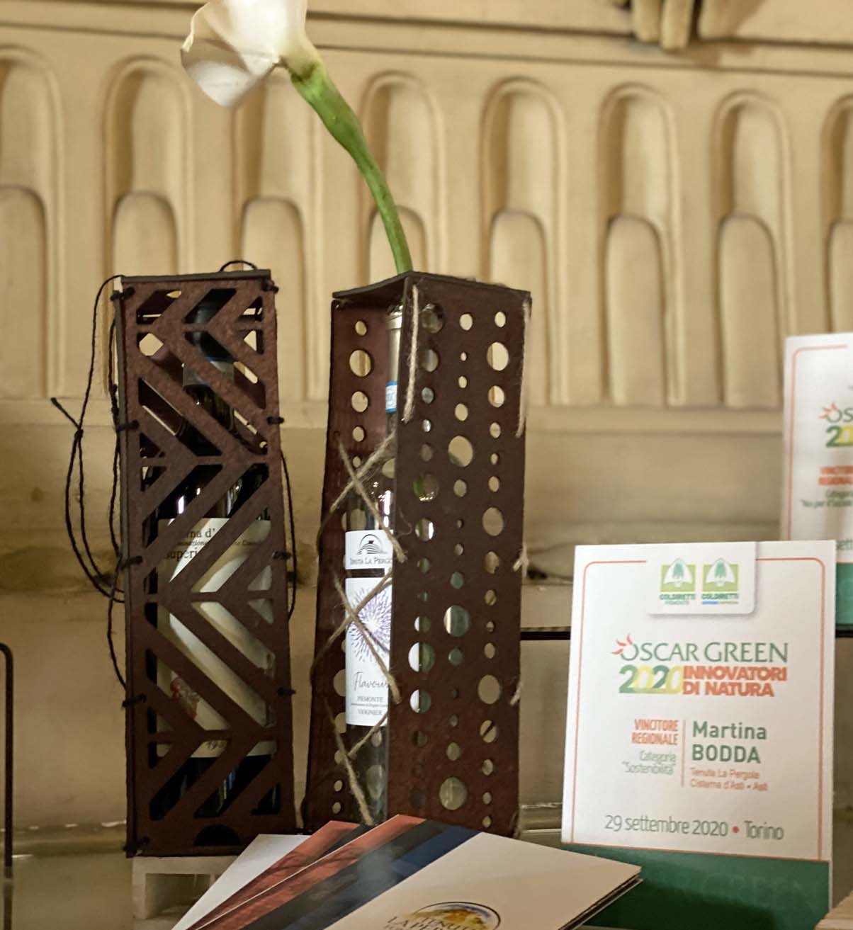 «Ringrazio mia mamma per avermi dato l'idea di riutilizzare i filtri di cartone utilizzati nella nostra cantina per realizzare i portabottiglie, i miei fratelli per il supporto, Coldiretti Asti per avermi suggerito questa opportunità e l'Università di Torino». L'idea di Martina è prima diventata la sua tesi di laurea ed ora è un progetto denominato “Fine”, dall'unione di Filter e Wine per sottolineare due aspetti: fine come eleganza, e come fine vita che viene reinventato.