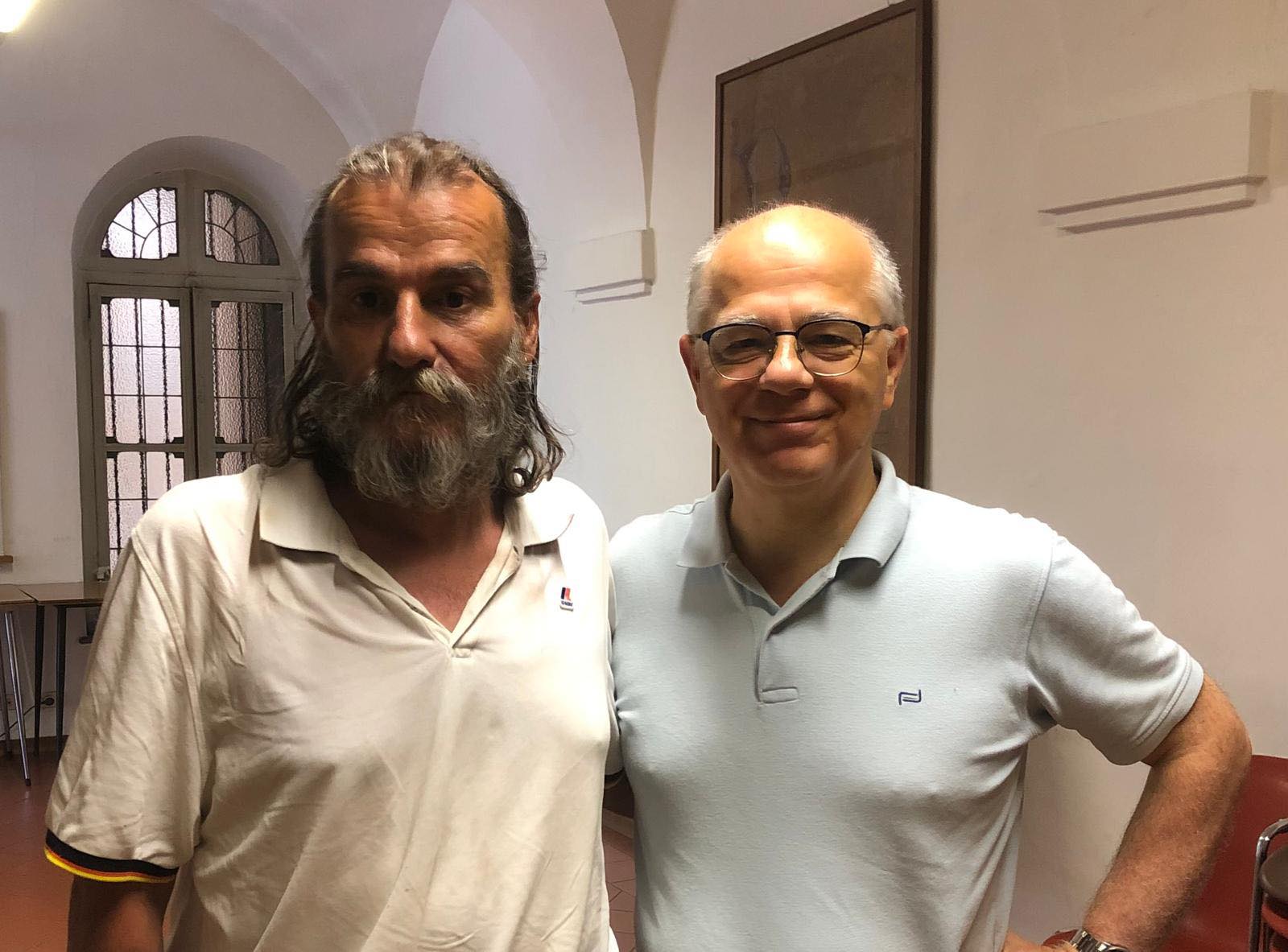 Andrea insieme al direttore della Caritas di Asti Beppe Amico