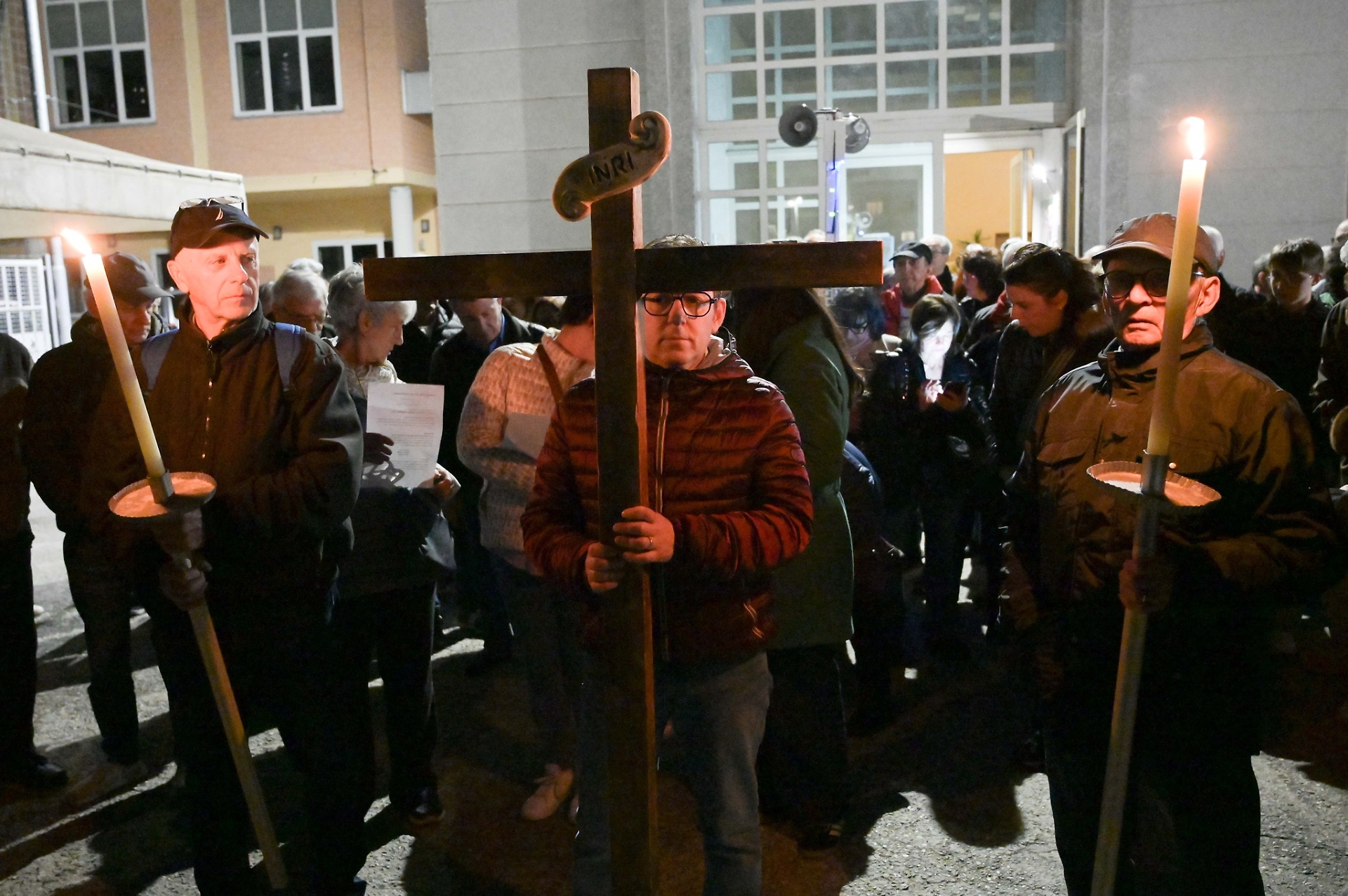 Da lì, la processione si è snodata lungo via Scotti, via Sodano, via Masoero, via Torchio, via Valle, via Gancia e via Pio Domenico, fino a raggiungere il piazzale della parrocchia dei Santi Annunziata, nel quartiere Tanaro. Un itinerario quotidiano, trasformato per una sera in spazio di raccoglimento e meditazione condivisa.