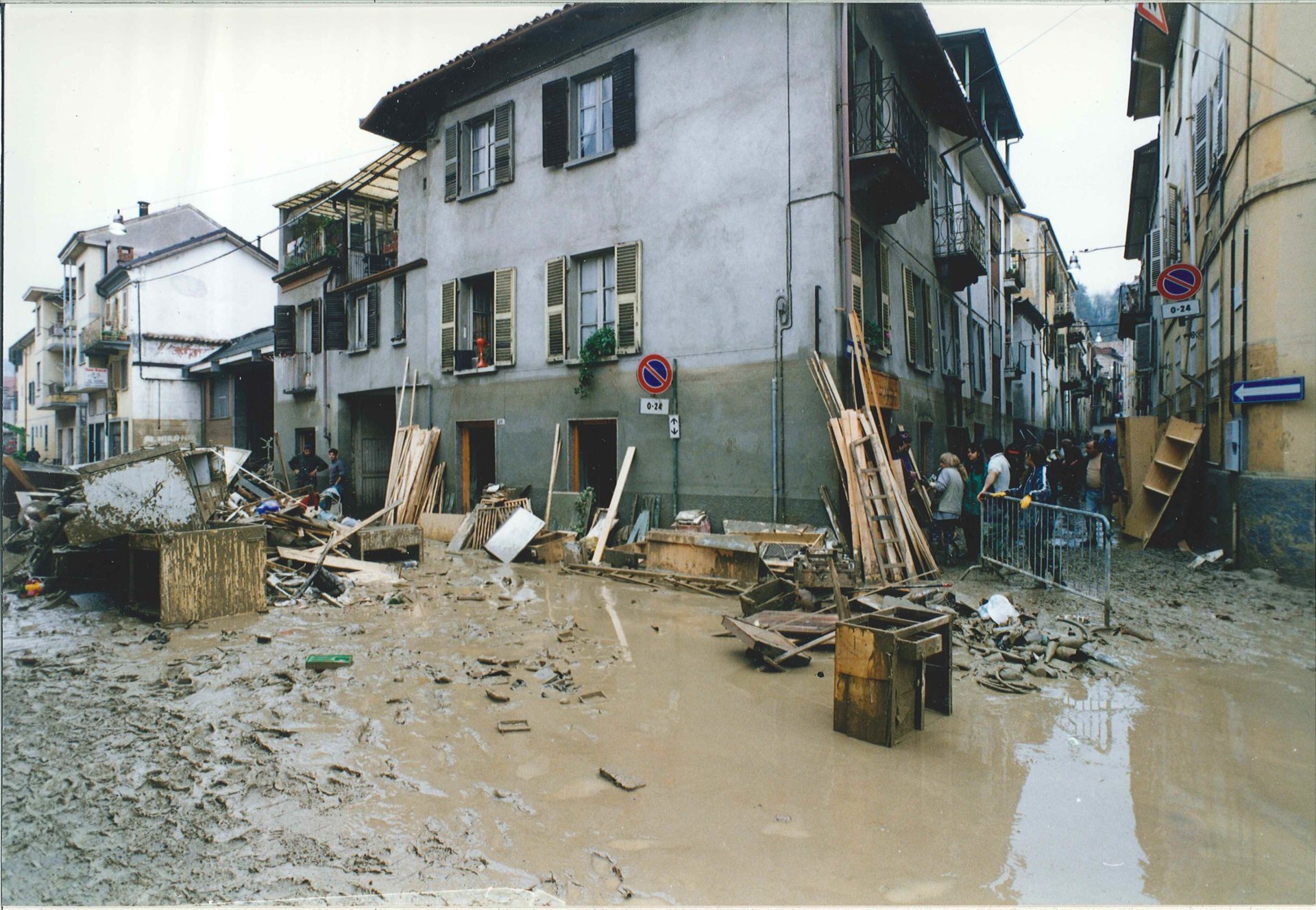 Era un sabato. In piazza Cavour, come adesso, c’erano le giostre battute dalla pioggia. Da quattro giorni l’acqua cadeva, ininterrottamente. Canelli s’apprestava a celebrare la Fiera di San Martino e ad accogliere la carovana del tartufo. E aspettava. Un’attesa silenziosa, la tensione si tagliava con il coltello. Il fiume ululava liberando boati: erano alberi, pietre, persino una cisterna che passando sotto il ponte di corso Libertà urtò l’arcata in cemento armato facendo vibrare la struttura.