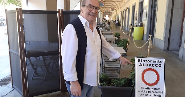 I titolari di Albacco si sono già rivolti alla polizia municipale facendo presente la situazione, ma la risposta è stata che loro fanno quello che possono: «Eppure la legge è chiara, le regole ci sono – insiste Lentini che si è documentato – e ci sono anche le sanzioni, che possono superare i 100 euro, bisogna solo cogliere le persone sul fatto». In più, se mai dovesse succedere un incidente, responsabile sarebbe proprio la famiglia Lentini. «Così, mettendo mano al nostro portafoglio – spiega il titolare di Albacco – abbiamo fatto fare due cavalletti con cartelli in cui si indica l’inizio e la fine del plateatico e il divieto di transito, in questo tratto di porticato, per biciclette e monopattini elettrici».
