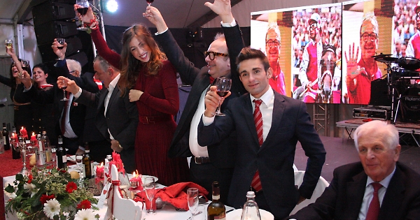 A fare bella mostra di sé, sul Palco, in grande evidenza, il Drappo 2018 dipinto dal Maestro Antonio Guarene, che è andato a fare compagnia agli altri quattro conquistati nel 1988 e 1989 da Maurizio Farnetani, detto Bucefalo, e nel 1994 e 1995 da Mario Cottone, detto Truciolo. Sul grande schermo, suddiviso in quattro settori, non hanno mai smesso di scorrere filmati relativi al successo moncalvese oltre ad immagini suggestive, curiose e particolareggiate dell’ultimo Palio. La serata, presentata dalla dirompente Federica Faccaro, ha vissuto nella sua fase iniziale una riproposizione fotografica dei successi conseguiti da Borghi, Rioni e Comuni nella corsa astigiana dal 1967 ad oggi. Per ogni edizione un’immagine che ha emozionato i presenti. E non potevano mancare i filmati delle tre batterie e della finale del Palio 2018, oltre a quelle, trascinanti, della serata di domenica 2 settembre, con il rumoroso arrivo in città, a suon di clacson, di sostenitori e simpatizzanti biancorossi.