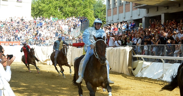 Dallo steccato: cavallo Sultano da Clodia, fantino Valter Pusceddu; Vanadio da Clodia, Dino Pes; Acqua Fresca, Loris Armosino; Tarocco, Alessio Bincoletto; Nicolas de Pedra Ulpu, Salvatore Lo Manto; Bomario da Clodia, Andrea Mari e Vankook, Giosuè Carboni.