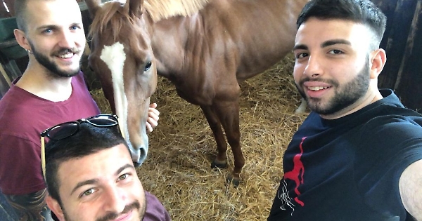 Nella foto sopra, Andrea Rasero, Carmine Cobuccio e Dimitri Parisi coccolano Zena.