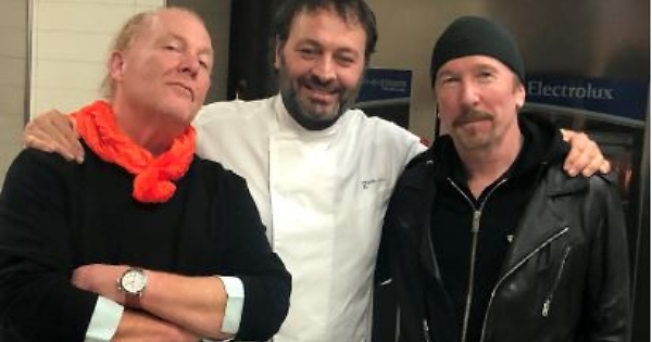 È un appassionato estimatore di grandi vini, del tartufo e della gastronomia di alta qualità. Nei giorni scorsi un visitatore d’eccezione in Piemonte, il chitarrista degli U2 David Howell Evans “The Edge”, alla scoperta dei grandi sapori della tradizione del territorio, secondo la guida Lonely Planet 2019 la più bella regione del mondo e assolutamente da visitare. E nel programma di viaggio di “The Edge” un tour nelle Langhe, che ancora non conosceva. Tra le mete che ha scelto, proprio per scoprire le eccellenze enogastronomiche piemontesi, il ristorante “Guido” di Fontanafredda dello chef stellato costigliolese Ugo Alciati. Uno speciale incontro tra grandi nomi della musica e della cucina: grandi per le loro straordinarie doti professionali, ma anche umane. Tre grandi nomi: perché insieme a “The Edge” è arrivato al ristorante di Ugo Alciati lo chef statunitense di origini italiane Mario Batali, per lunghi anni socio di Joe Bastianich nella catena di ristoranti di alta cucina e che ha curato la cena di Stato alla Casa Bianca del Presidente Obama a cui partecipò l’allora Premier Matteo Renzi. Tra gli chef più famosi in America, protagonista del primo reality dedicato alla cucina “Iron chef”, Batali ha accompagnato “The Edge” nel suo viaggio in Italia.