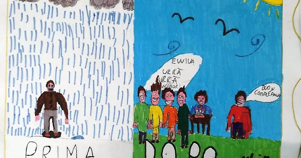 Nell' immagine: un disegno dei bambini della scuola primaria di Villafranca.