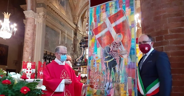 Asti ha festeggiato San Secondo, il suo Patrono, con una celebrazione che si è tenuta nella mattinata di ieri, martedì nella chiesa intitolata al “Santo”. Si è trattato, come ogni anno, di uno degli appuntamenti più sentiti e significativi legati al Palio, poiché nella circostanza vi è stata l’Offerta di uno dei due Drappi alla Collegiata. A donare una delle due opere dipinte dall’artista astigiano Filippo Pinsoglio è stata l’Amministrazione Comunale, guidata dal sindaco Maurizio Rasero. Una cerimonia sentita, seppur forzatamente ridotta e modificata vista la difficile situazione legata alla pandemia che stiamo vivendo. Nella circostanza è stato rievocato un episodio significativo nei rapporti tra l’autorità civile e quella religiosa, facendo rivivere un evento risalente al periodo medievale quando si chiuse una diatriba tra le parti che durava da lunghissimo tempo. Fu Papa Pio VII, con una bolla datata 1818, a stabilire che la festa patronale cittadina cadesse il primo martedì di maggio. Non ha ovviamente potuto svolgersi il tradizionale Corteo Storico preceduto dagli sbandieratori dell’A.S.T.A. e dal Gruppo del Capitano, composto da Rettori, figuranti e dal vessillifero di ciascuno dei ventuno Borghi, Rioni e Comuni partecipanti al Palio. Tutto si è svolto all’interno della Collegiata di San Secondo. Al termine della funzione, il vescovo di Asti, monsignor Marco Prastaro, e il sindaco Maurizio Rasero hanno portato l'urna del Santo davanti all'altare maggiore. Il cero che illuminerà la cripta dove si trovano i resti di San Secondo è stato acceso quest’anno da Flavio Boraso, direttore generale dell'Asl di Asti. Anche la tradizionale distribuzione della “Minestra dei Poveri”, solitamente preparata dalla Pro Loco di Castiglione, appuntamento mirato a richiamare un’antica usanza medievale e che avrebbe dovuto svolgersi in Piazza San Secondo al termine della funzione religiosa, non ha potuto avere luogo. La consegna del Drappo alla Collegiata ha rappresentato la tappa conclusiva di un percorso cominciato il sabato precedente con l’Investitura e il Giuramento dei Rettori e la Stima dei Drappi, cerimonie tenutesi al Teatro Alfieri anzichè nel cortile di Palazzo Ottolenghi come annunciato a causa di un peggioramento delle condizioni meteorologiche. Al termine della Stima il Sindaco Rasero ha ufficialmente indetto l’edizione 2021 della corsa, che dovrebbe avere luogo domenica 5 settembre. D’obbligo ovviamente il condizionale, poichè soltanto un netto miglioramento della situazione che stiamo vivendo, legata al coronavirus, consentirà la regolare effettuazione del prossimo Palio. Frattanto il calendario degli eventi legati alla manifestazione di settembre vedrà, quale prossimo appuntamento, la serata delle prove di addestramento dei mezzosangue in programma il prossimo 12 giugno sulla pista dello stadio “Censin Bosia”. Ad organizzare sarà, come sempre, il Collegio dei Rettori, attualmente presieduto da Filippo Raimondo. L’evento del 12 giugno rappresenterà un passaggio di notevole importanza verso l’effettuazione, o meno, del prossimo Palio. Qualora dovesse saltare, per un qualsiasi motivo, il camè previsto a Fucecchio, con le prove di addestramento, a porte chiuse, propedeutiche al Palio in programma nella città toscana (già posticipato a settembre). Da Fucecchio e Asti sono attesi segnali di ripartenza verso una stagione decisiva. Nuove cancellazioni di eventi palieschi per il secondo anno consecutivo potrebbero sancire un temuto “game over”. Un’eventualità questa da scongiurare. Nel modo più assoluto!