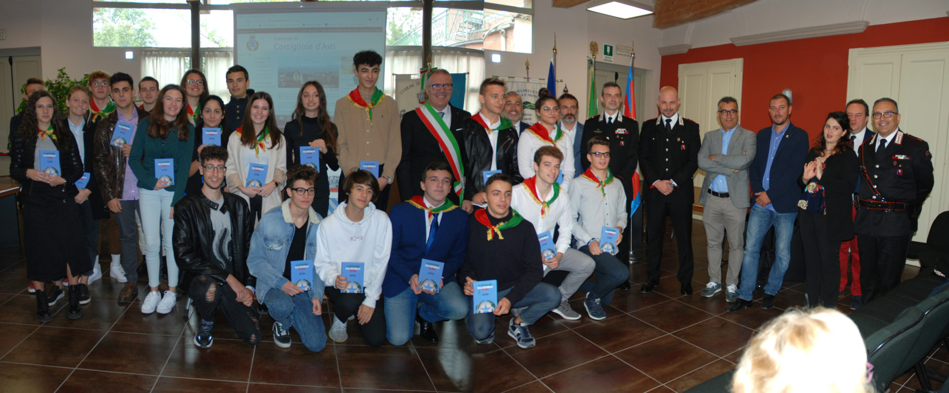 Una cerimonia sentita e gioiosa quella che il Comune di Costigliole ha rivolto nei giorni scorsi ai ragazzi della leva 2001 per festeggiare i loro 18 anni. Prima la messa in parrocchia, con le parole a loro dedicate dal parroco di Costigliole don Beppe Pilotto e l’omaggio di una copia della Bibbia; poi il momento in municipio, con gli auguri e le riflessioni del sindaco Enrico Cavallero e il dono di una copia della Costituzione italiana. Numerosi i ragazzi e loro familiari che hanno partecipato alla cerimonia, a cui erano presenti, accanto all’amministrazione comunale, il comandante provinciale dei carabinieri di Asti Pierantonio Breda, con il comandante della Compagnia di Canelli Caprio e della stazione di Costigliole Sarcinelli, l’onorevole Giaccone, il vicepresidente della Regione Carosso.